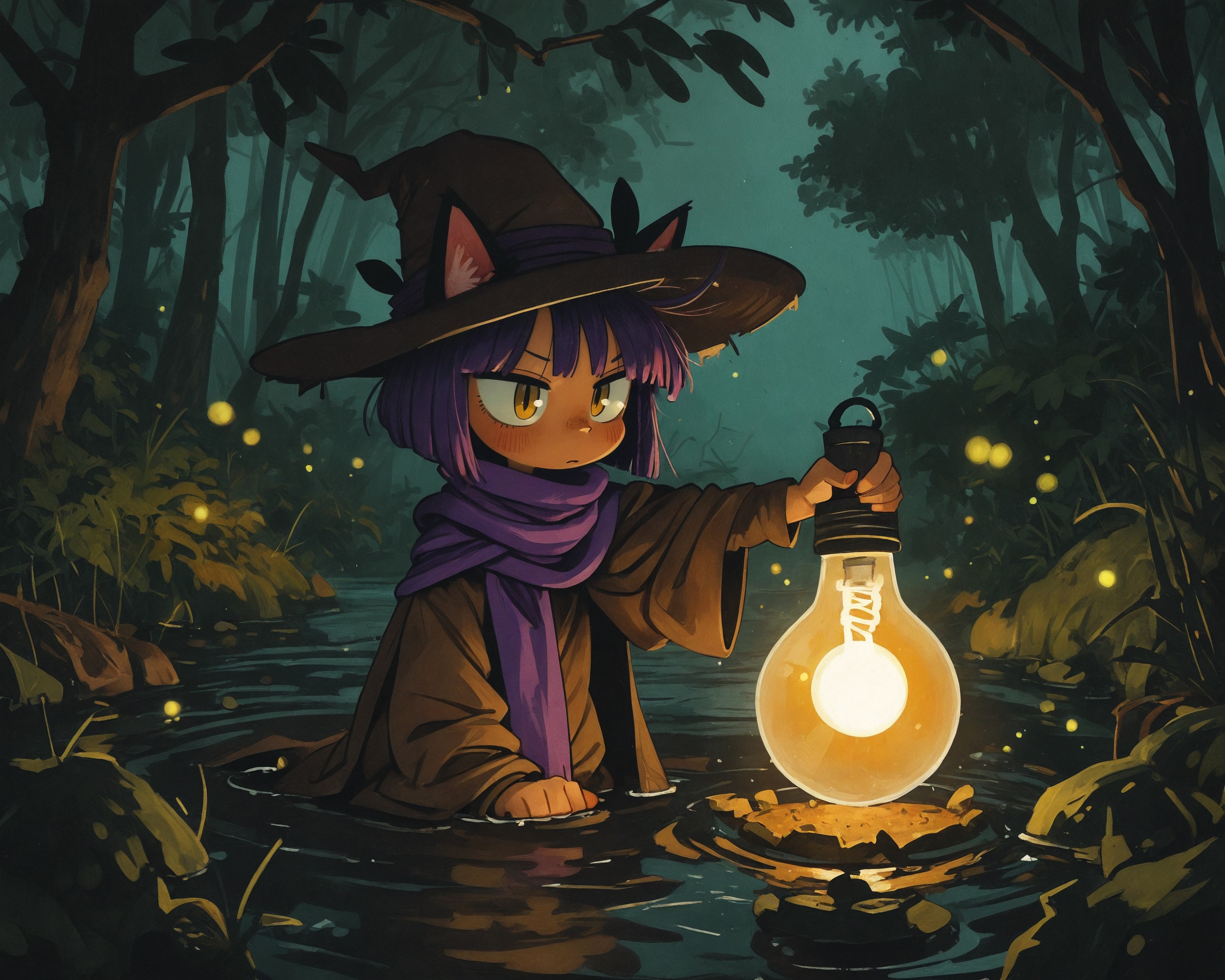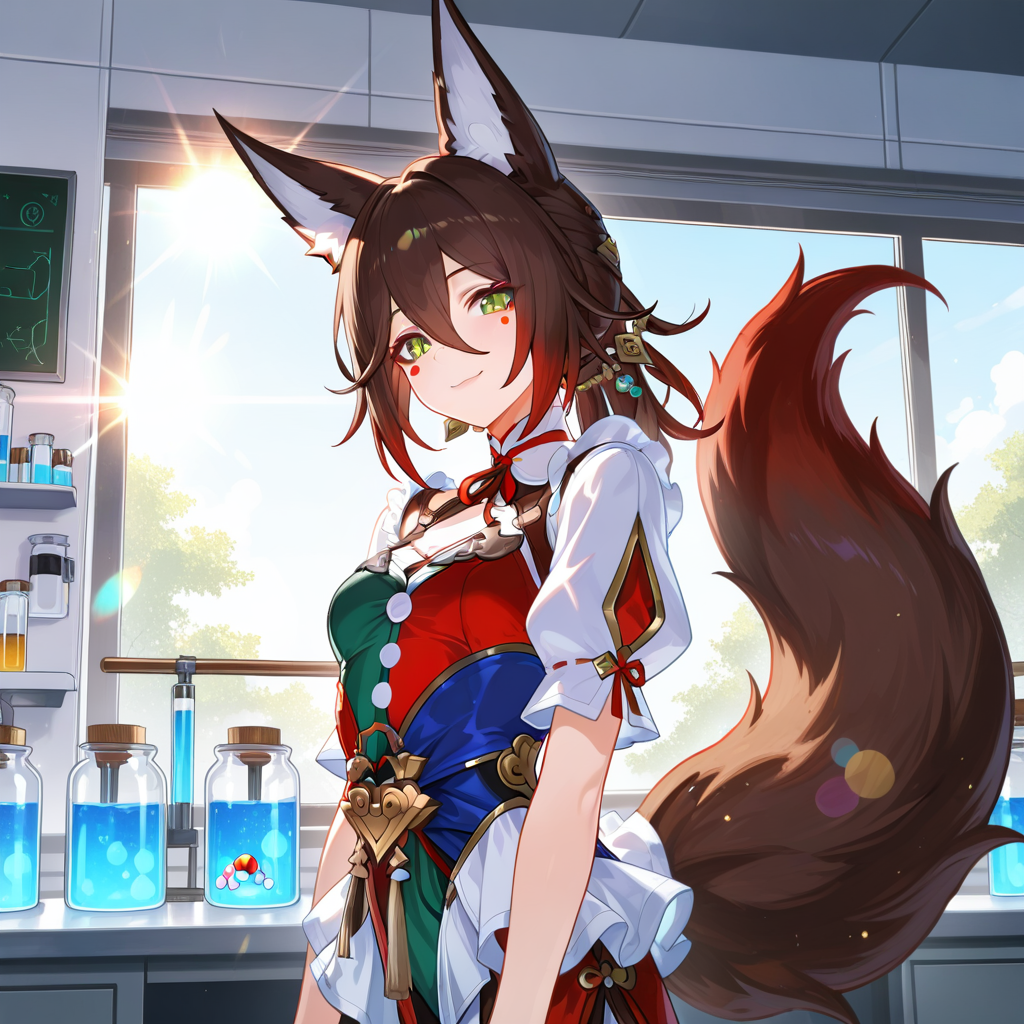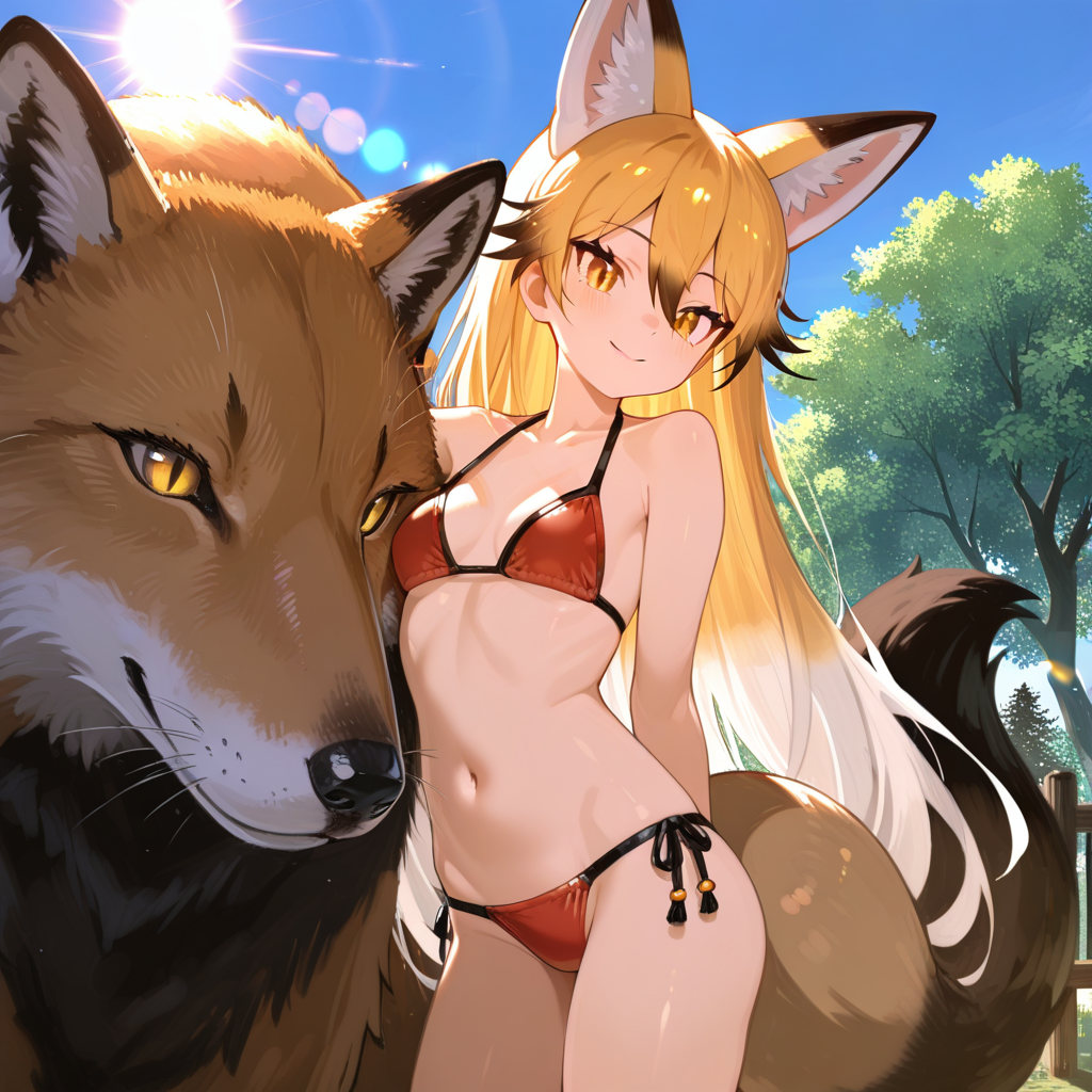 Промпты, правда, через GPT генерировал по сути, скормив ему инструкцию со страницы модели и уже спрашивая промпт по конкретным сюжетам. Часть тегов, которые генерирует тот же GPT, не представлена на буру (нет тега fluffy tail wrapped in lights). Так что, предполагаю, тут играет роль, что у ровея существенная часть датасета была на натуркапшнах обучена, поэтому модель позволяет такие вольности, несмотря на то, что в люстре TE был сильно бору-тегами пережарен.