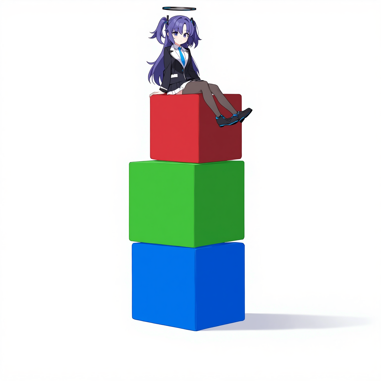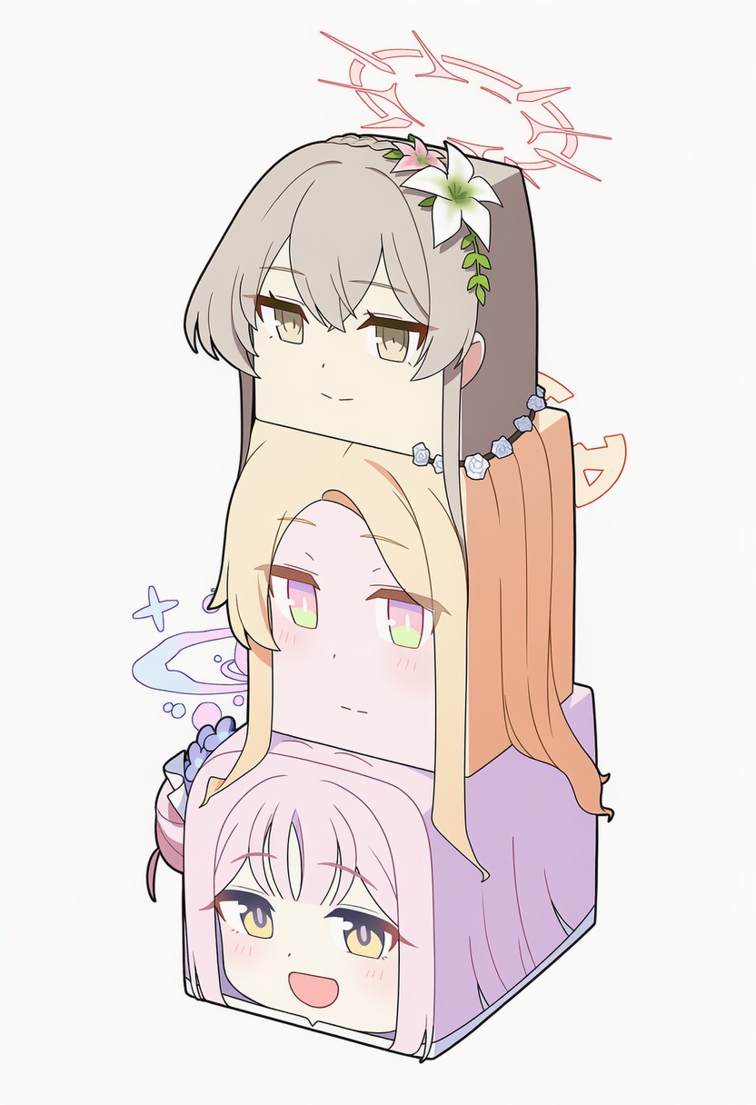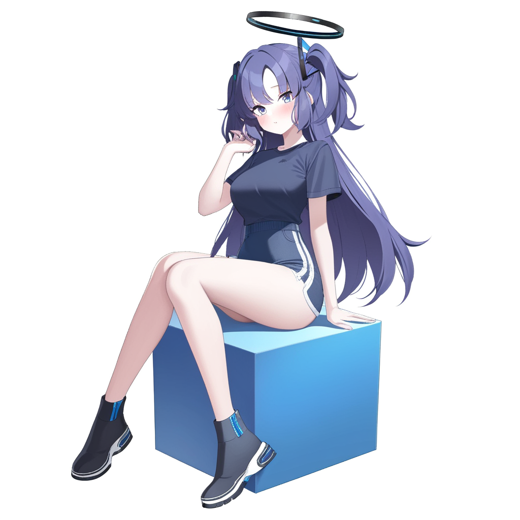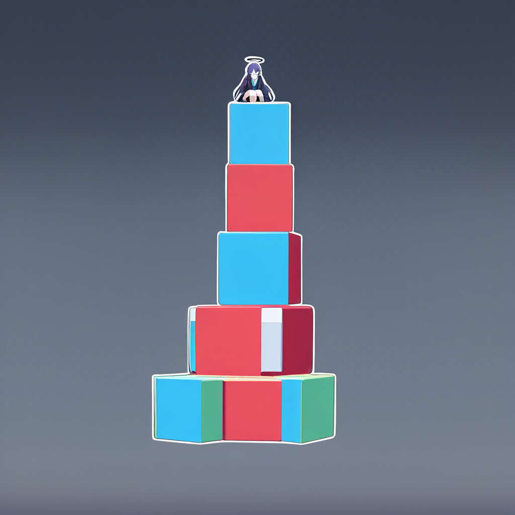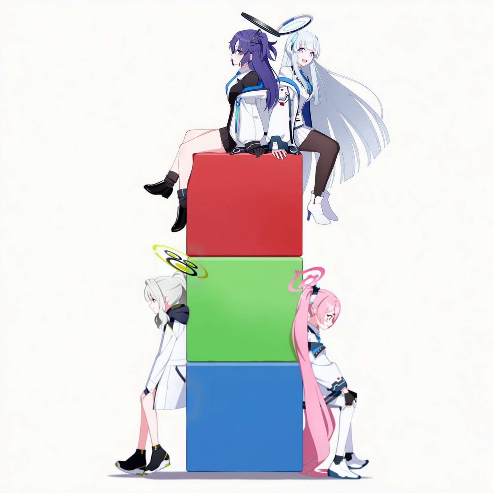 >>1242109 Промпт для всех моделей был одинаковый: blue archive, official art, 1girl, yuuka (blue archive), girl is sitting on top of vertical stack of three cubes: red, green, blue.