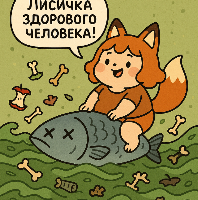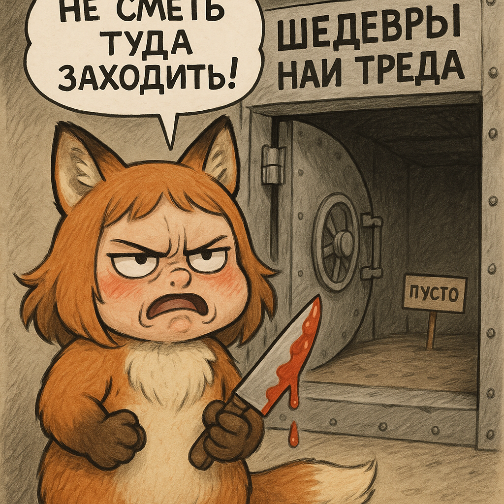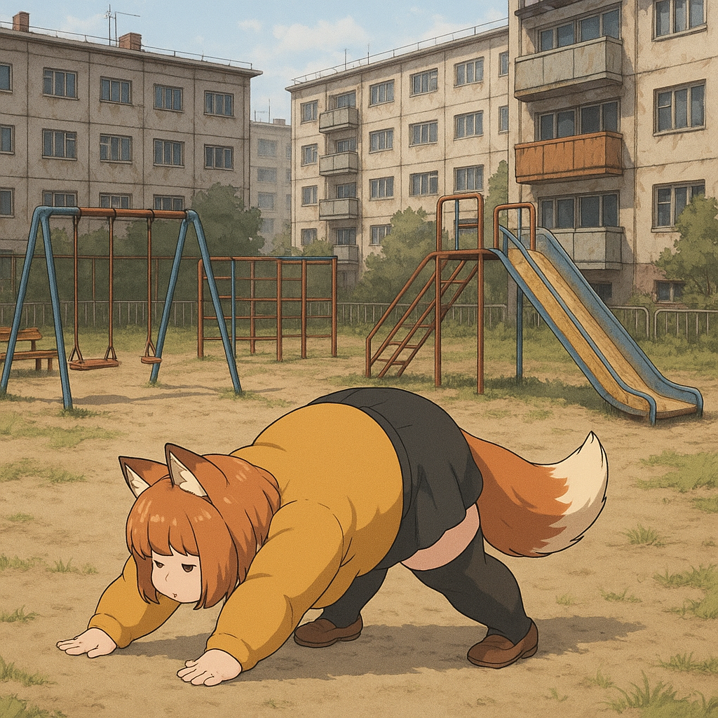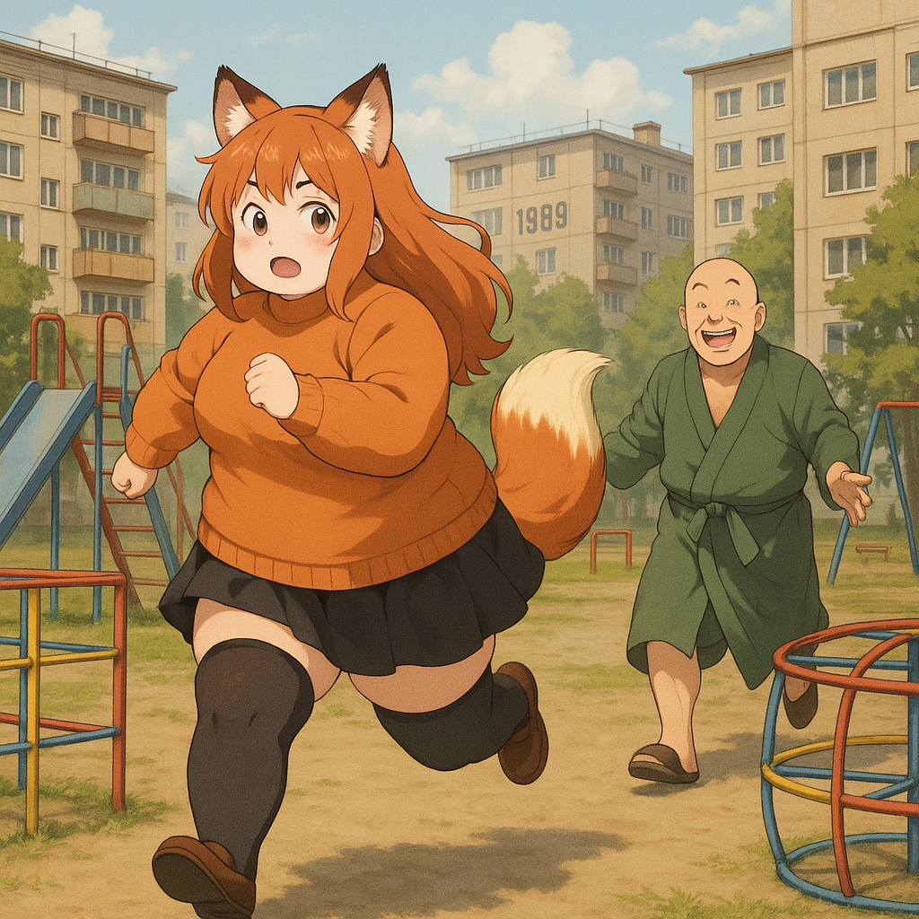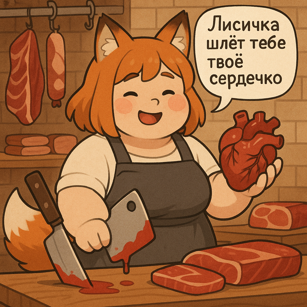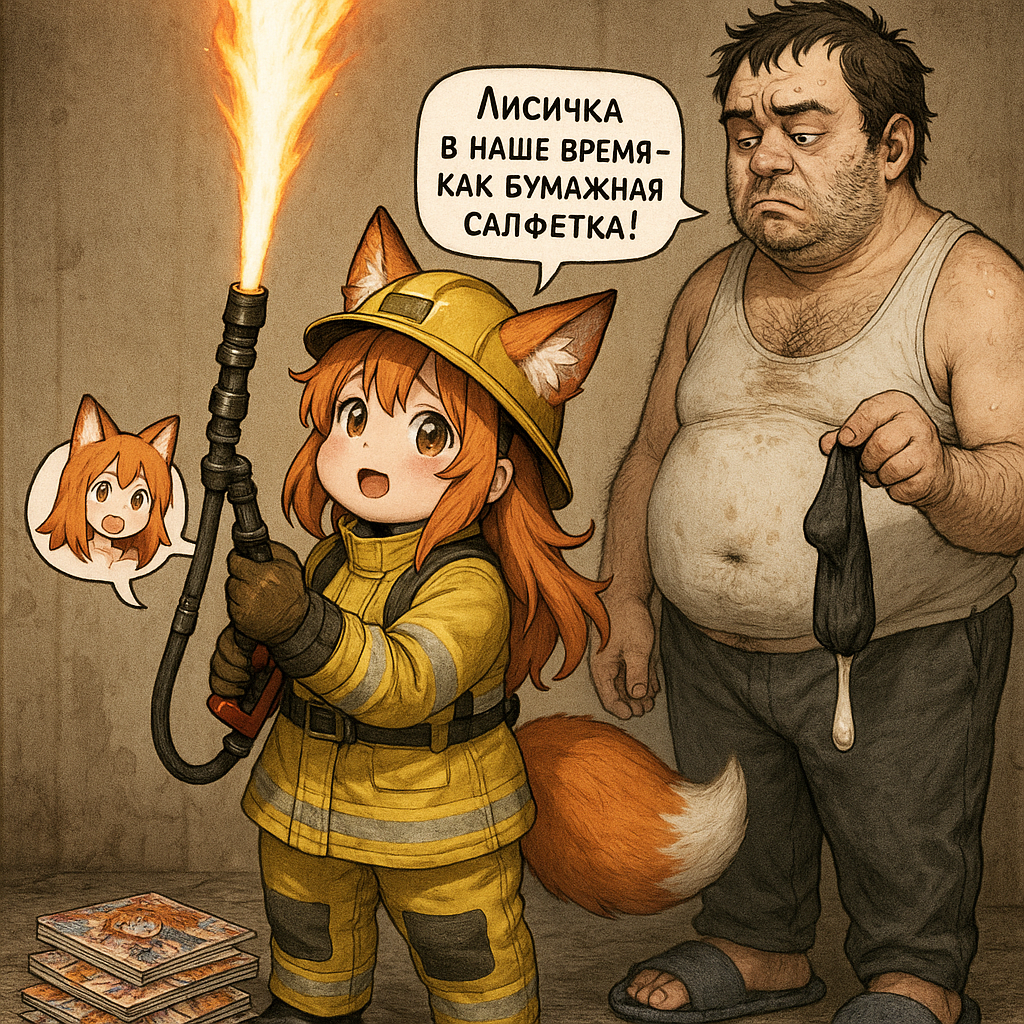 Там обитала Лоли-Лисичка-Гниль — существо ростом с крысу, с глазами-пуговицами от дешевой игрушки и хвостом, слепленным из клочьев шерсти и обрывков промптов. Она питалась тем, что падало с "трона": обгрызенными кабельными стяжками, каплями спермы на плинтусах, а главное — его позором.