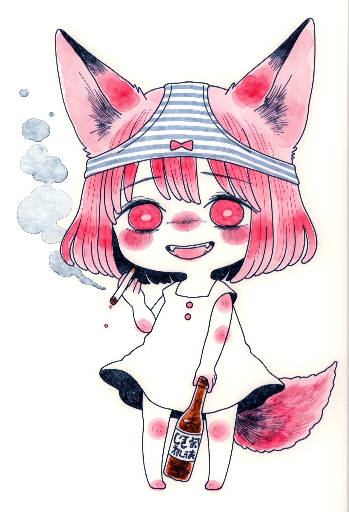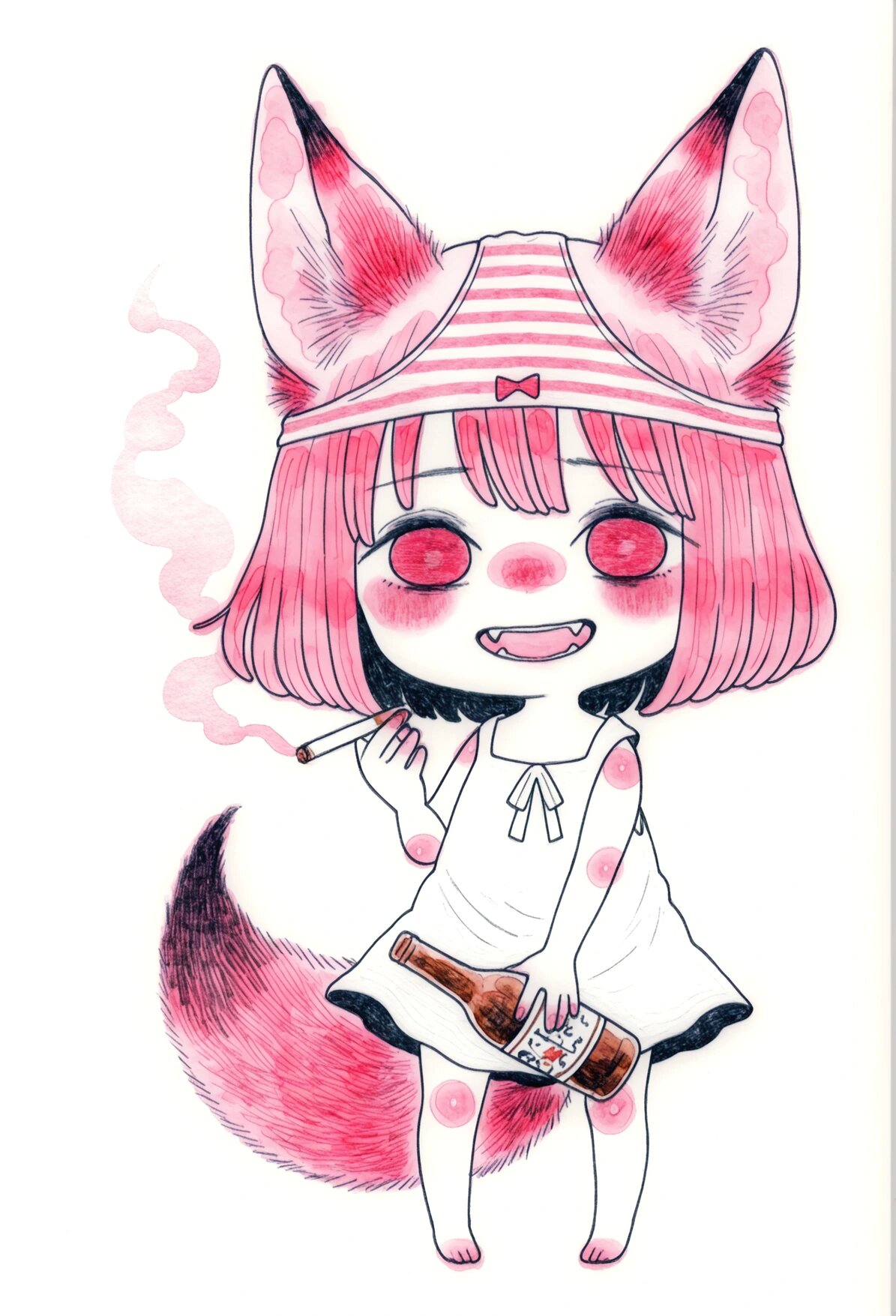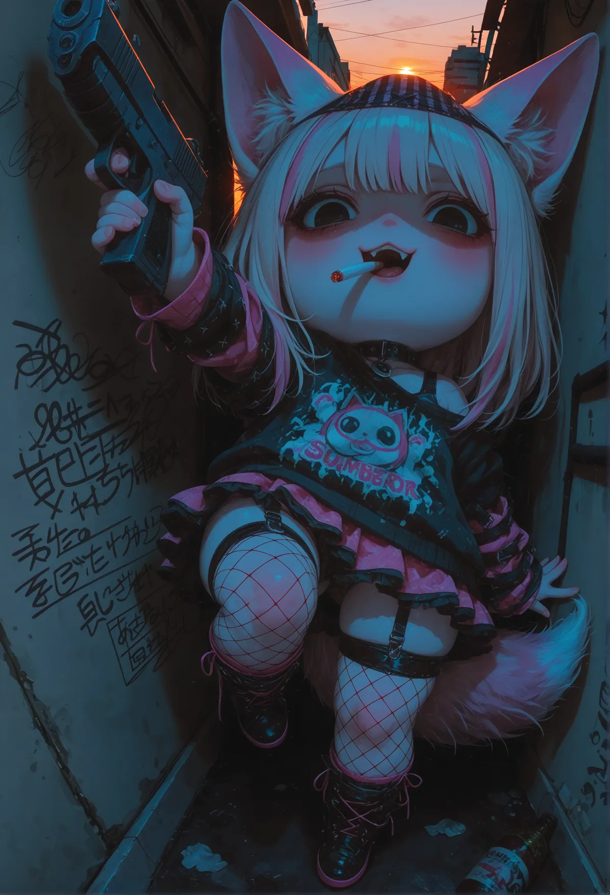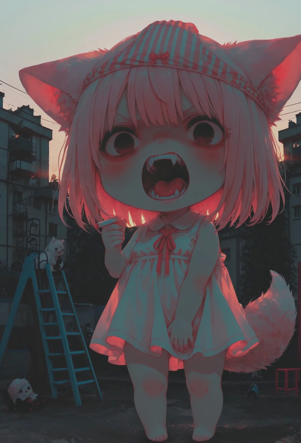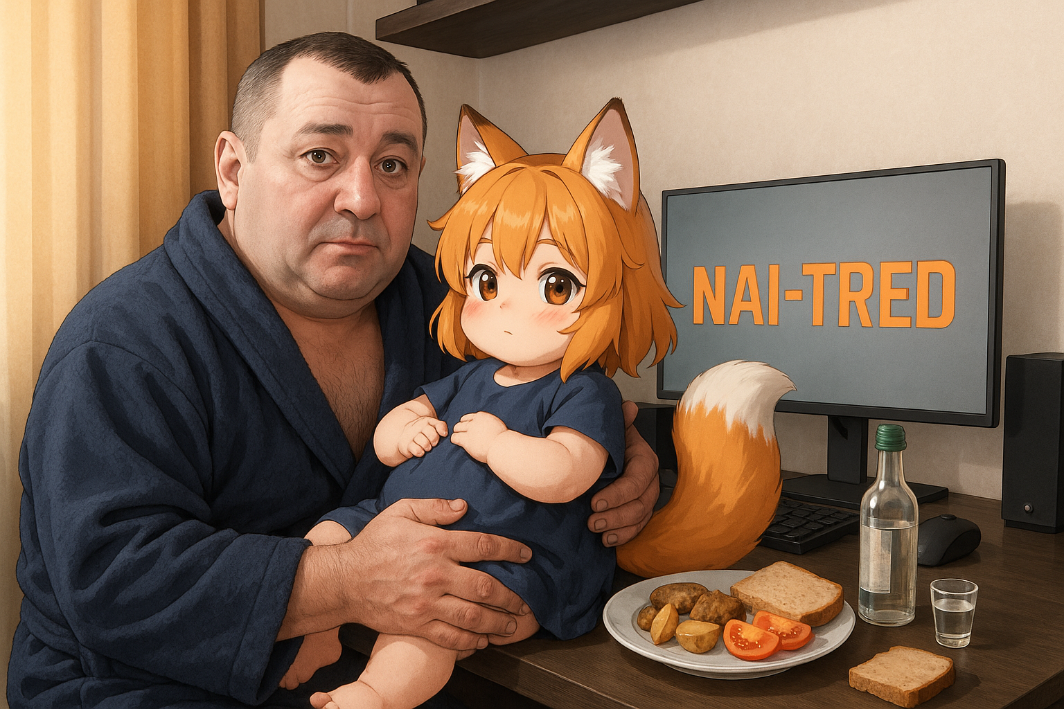 Там обитала Лоли-Лисичка-Гниль — существо ростом с крысу, с глазами-пуговицами от дешевой игрушки и хвостом, слепленным из клочьев шерсти и обрывков промптов. Она питалась тем, что падало с "трона": обгрызенными кабельными стяжками, каплями спермы на плинтусах, а главное — его позором.