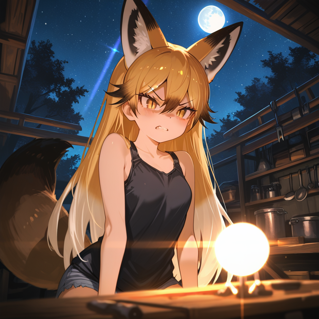 Однажды он попытался сгенерировать её образ: «fluffy fox loli under bed, sparkling eyes, cute paws». На выходе получилась псина-мутант с тремя анусами и жабьими лапами. Лисичка-Гниль завизжала от смеха: — Я ж говорила — хватит юзать broken LoRA от сомнительных лисоебов!