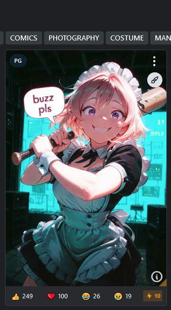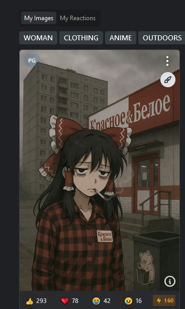 >>1245132 Всмысле? На аибуру есть апвоты хотя бы. Правда у меня посты собирают максимум 20 апвотов, но уже что-то. Какой смысл тогда постить свою генерированную картинку, если я даже лойсов не получу за это?