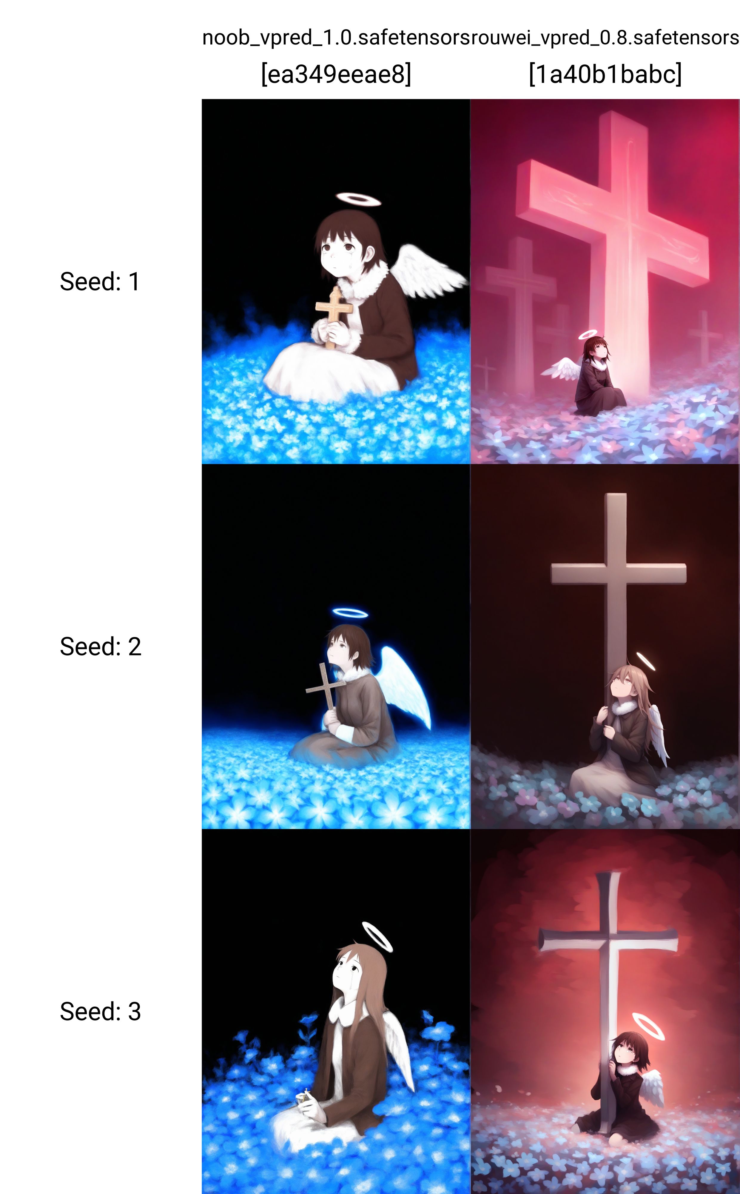 >>1247395 >>1247398 1. Ты используешь чекоинт NoobaiXL с лорой для Pony Diffusion. Это разные крупные тьюны и вовсе не факт, что лоры с поней будут хорошо работать с нубом 2. Ты испольуешь конструкции рода "holding a giant orthodox cross in the air". Это имело бы смысл, если бы ты использовал чекпоинты с поддержкой натуртекста. Однако, тот же нуб просто выжжен тегами с данбуры и не понимает ничего за их пределами: https://danbooru.donmai.us/wiki_pages/tag_groups