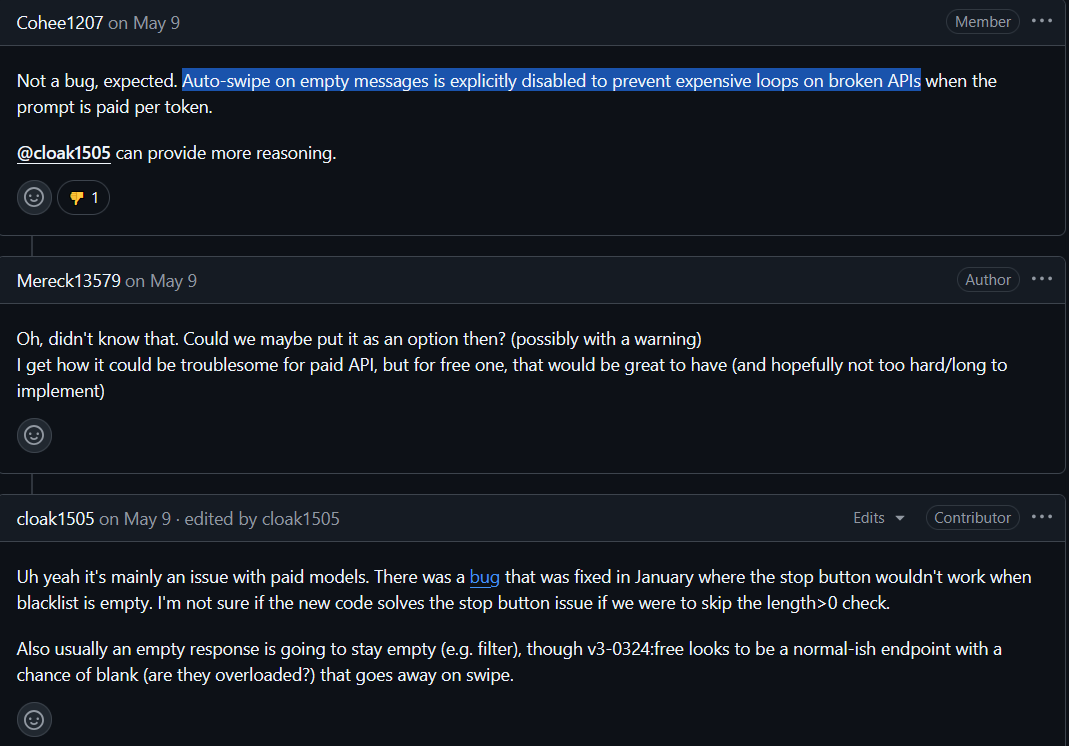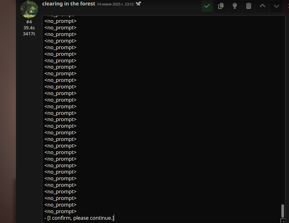 Ну так что, есть у кого ссылка на скрипт на автосвайп пустых сообщений? Подредачил с гопотой автосвайпы в power-user.js, но нихуя не помогло Заебывает свайпать когда курсор пустые присылает