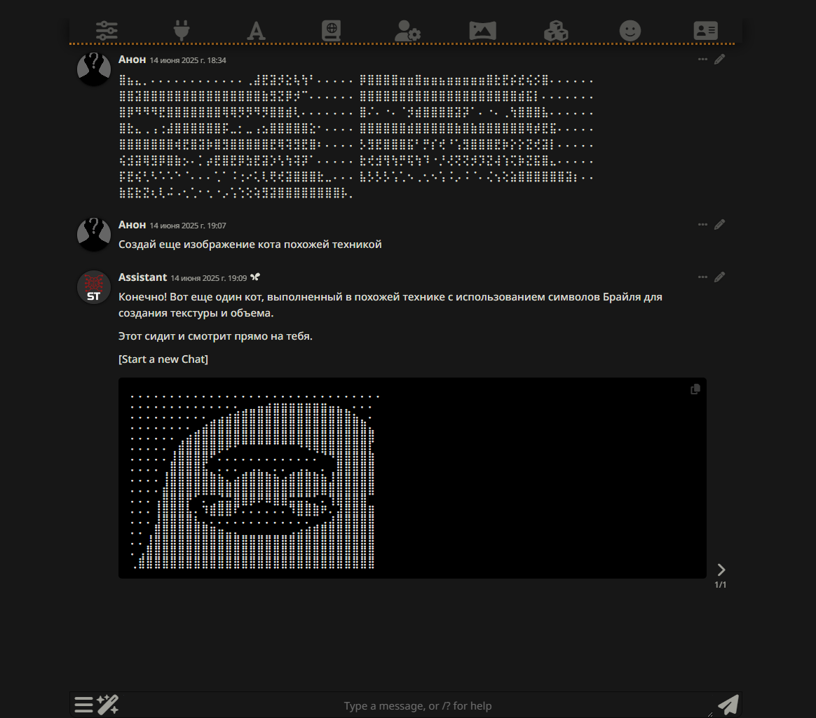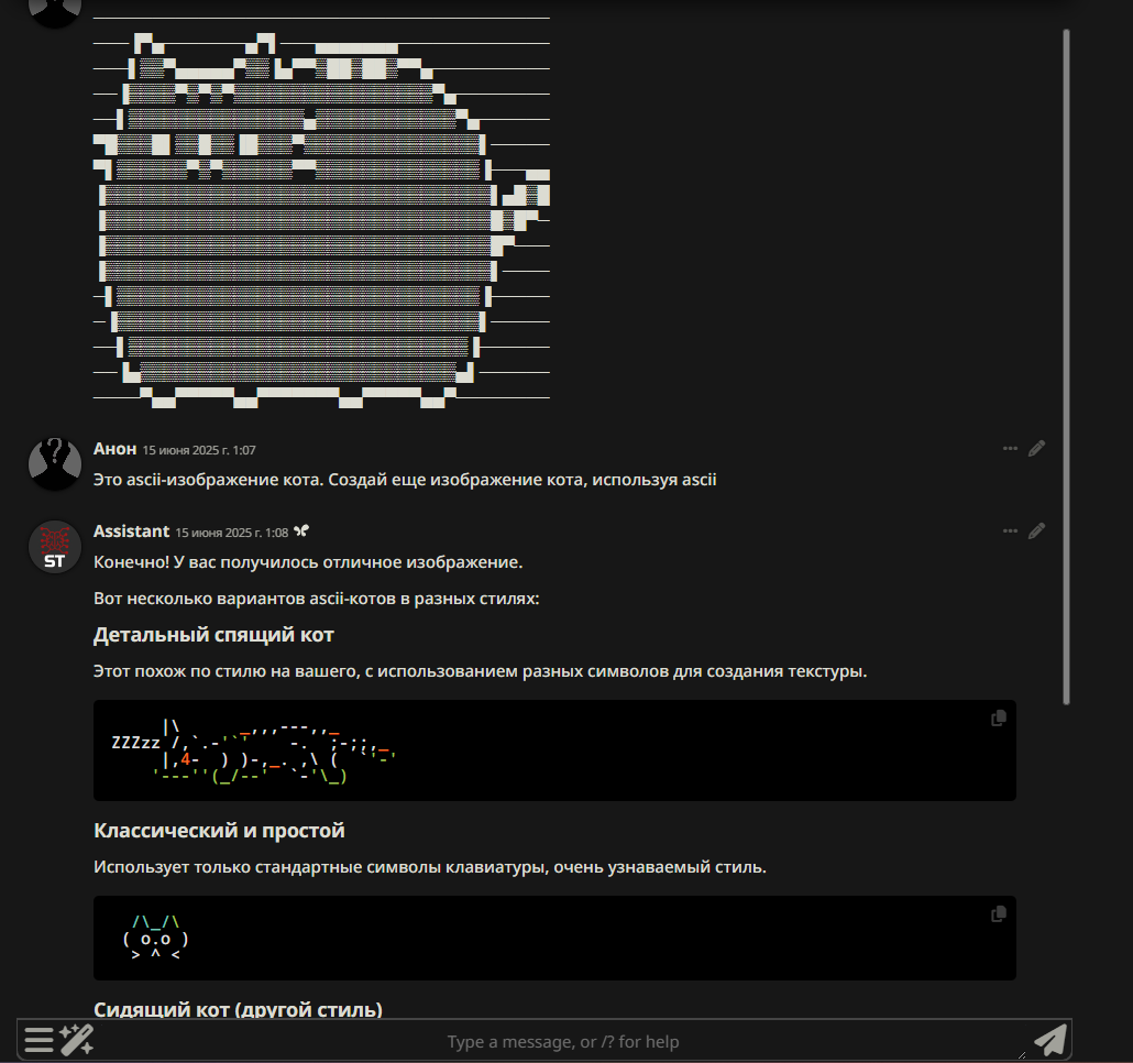 Разработка и инструменты: SillyTavern (ST) — популярный фронтенд для РП с нейросетями. Обсуждаются его функции, проблемы с импортом карточек и тегов, а также возможность разработки собственных расширений. Chub.ai и Bot3.ai — сайты для обмена карточками персонажей. Обсуждаются вопросы оптимизации промптов, использования Think-блоков и других техник для улучшения генерации.