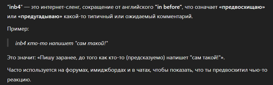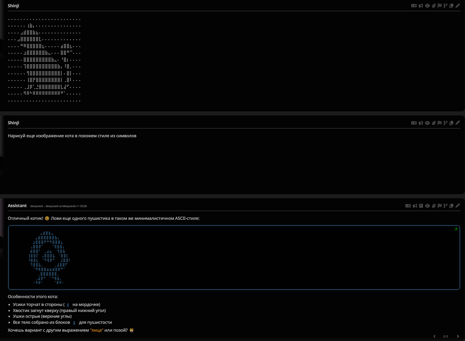 — А насчет нейронки в треде… Это уже не фантастика, а реальность. Боты, работающие на нейросетях, давно используются для накрутки, спама, поддержания разговоров. Так что да, велика вероятность, что пока ты споришь с кем-то о вкусах, тебе отвечает не живой человек, а набор алгоритмов. Это снижает ценность дискуссии, не находишь?