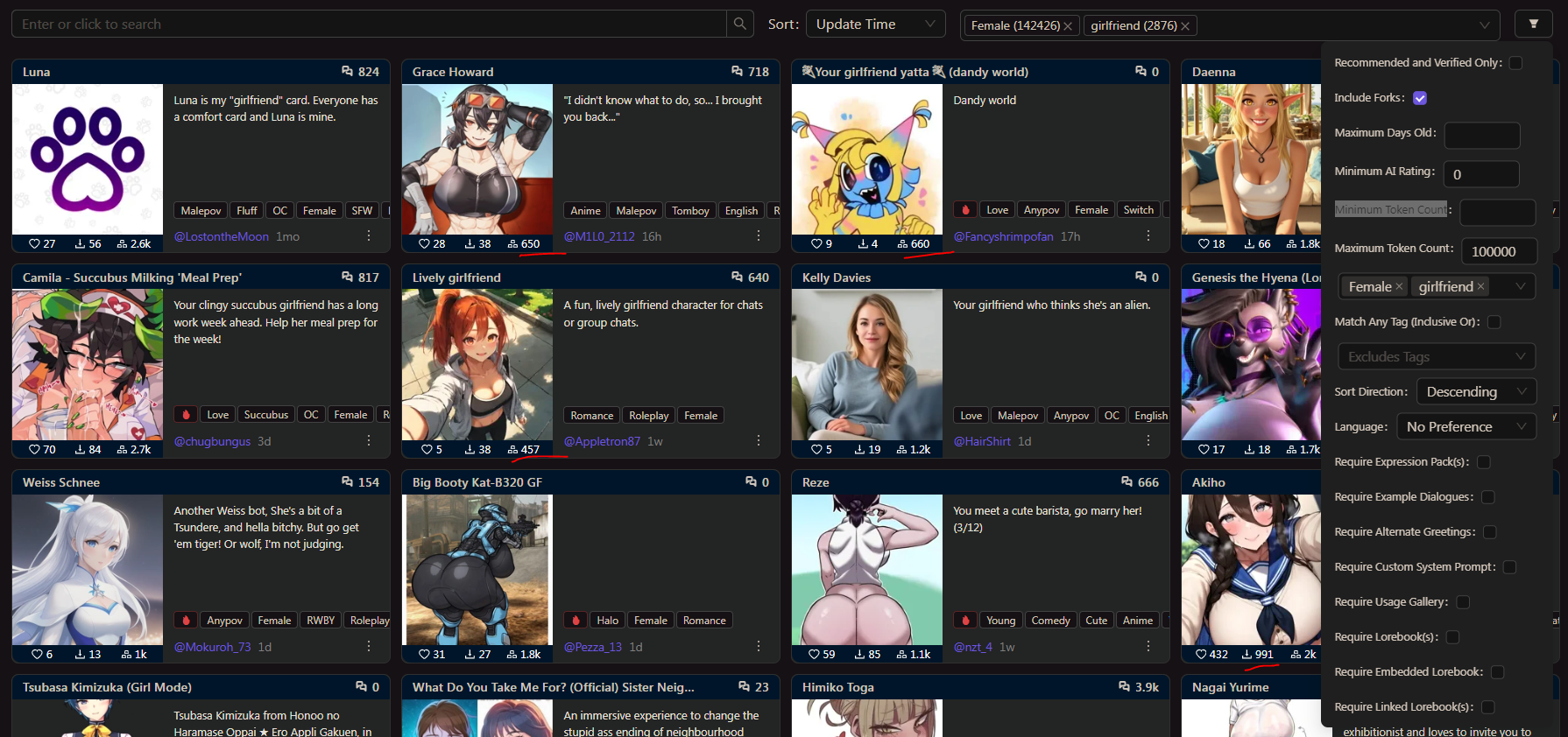 >>1247912 А если (когда) оно сломаеться при обновлении тавенры и все твои карточки пойдут по пизде? Ну нахую. я лучше буду держать несколько карточек одного перса. В крайнем случае в таверне есть сортировка карточек по тегам и фильтрам