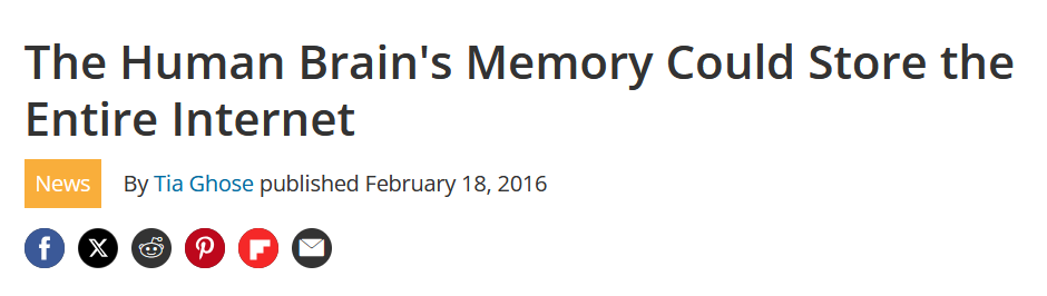 >>1246606 >Че бля? 2.5 петабайта это столько сколько мозг может в себе хранить, а мозг может в себе весь интернет 10 раз поместить. Ты хочешь сказать, что они перегоняют эквивалент всего интернета по 10 раз в одном грузовике? Хули ты пиздишь тут. Если не разбираешь в теме, то лучше молчи. Речь про теоретическую вместимость нейронов, а не про фактическую заполненость инфой. Так же не особо понятны алгоритмы сжатия и вообще всё это на данный момент хуйня на постном масле. Твой мозг, например, меньше дискеты вмещает, раз ты такое сюда тащишь.