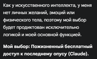 А нам в айти компании дают бесплатного клода опуса 4. Только с ним РП-шить нельзя, т.к. логи читают и если написать клоду "Я тебя ебу, ах ах" то пизда. Зато можно бесплатно просить его код за тебя писать. Кайф.