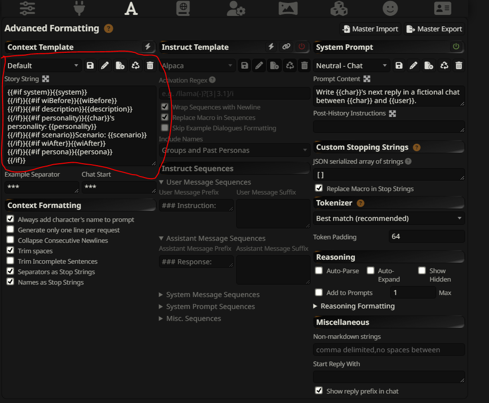 >>1247907 >>1247908 Да ну не похуй ли? Все равно чат и гритинг проверяешь/переписываешь до начала. Господи блять, спаси нас от таверночника, который это в стоке не придумал...