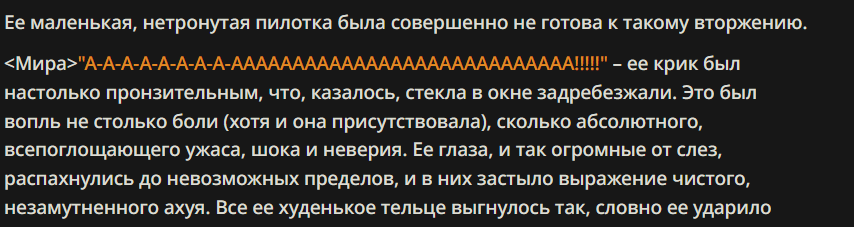 >Она посмотрела на него. В её глазах не было ничего. Абсолютно. Хуже глинтующих глаз только пустые. Говно хуже фурбы с убогим рванным стилем сообщений.