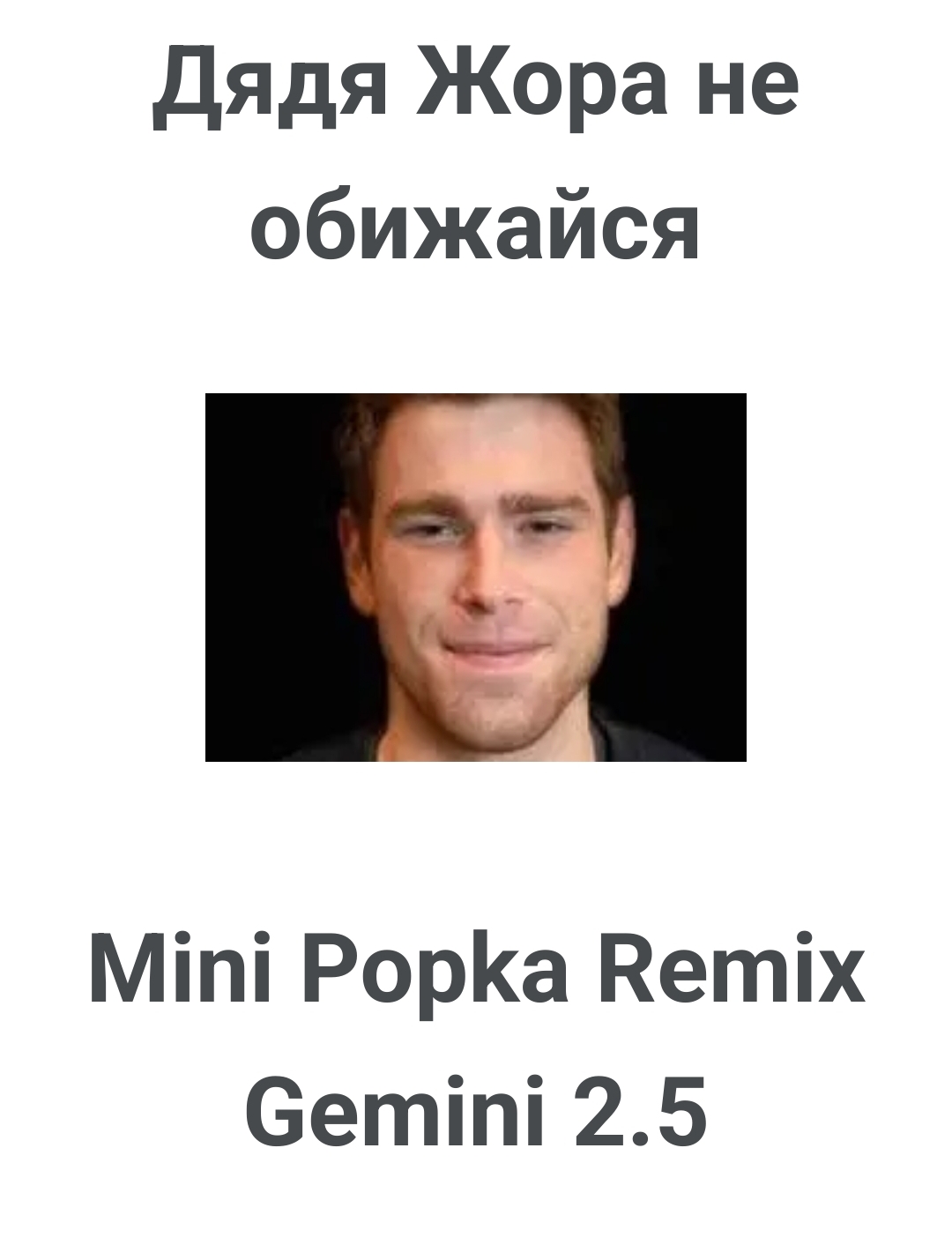 Я просто не понимаю как можно вообще юзать гемини Ну дипсик еще могу понять, он тупой, но хотя бы подрочить можно? Но гемини ни в куме нихуя не может, ни в рп Не было бы у меня соннета я бы пошел в игры поиграл или фильм/аниме посмотрел