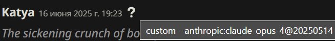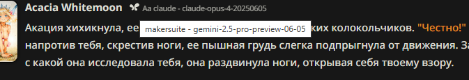 Сравнение нейросетей: Gemini (включая Gemini 2.5 Pro): Часто подвергается критике за "соевый" (бездушный, скучный, политкорректный) стиль, склонность к "эху" (повторениям), "лупам" (зацикливаниям) и строгие фильтры, особенно на русском языке. Несмотря на это, некоторые пользователи считают её "потужной" (мощной) и удобной для определенных целей, особенно после последних обновлений и с использованием кастомных промптов ("дядя Жора"). Отмечается, что она плохо держит контекст и теряет персону. Opus 4 (Claude Opus): Считается многими лучшей моделью для РП и "кума" (сексуального РП), высоко ценится за прозу, креативность и способность "держать" персонажа. Однако доступ к ней ограничен, и пользователи часто ищут бесплатные прокси или жалуются на её недоступность. Sonnet (Claude Sonnet): Sonnet 3.7 упоминается как хорошая модель, но Sonnet 4 и другие новые версии критикуются за ухудшение качества и "тупость", особенно на русском языке. Deepseek (DeepSeek-MoE): Описывается как модель с хорошим "кумом" (сексуальным РП) и отсутствием цензуры, но подвержена "шизе" (нелогичным ответам) и потере контекста. Отмечается её медлительность. Пользователи делятся промптами для улучшения её работы. GPT (включая GPT 4.5 Turbo): GPT-4.5 упоминается как одна из лучших моделей, но ожидается её отключение в июле. Обсуждается выход GPT-5, и мнения расходятся: одни ждут её как прорыв в AGI (общий искусственный интеллект), другие опасаются, что она будет слишком "фильтрованной" и "соевой". Groq (Grok): Некоторые пользователи считают её передовой, но есть жалобы на "лупы" и буквальное восприятие инструкций. Упоминается выход Grok 3.5. Kingfall (от Google): Появляется информация о новой модели от Google, которую некоторые считают прорывом, превосходящим Opus 4 и Deepseek, отмечая отсутствие у неё фильтров. Другие называют её "копрокалом от гугла". Локальные модели: Обсуждается возможность запуска моделей на собственном оборудовании, но это требует мощных видеокарт и большого количества оперативной памяти.