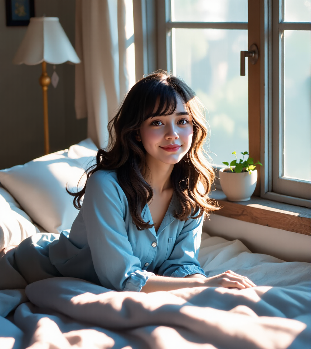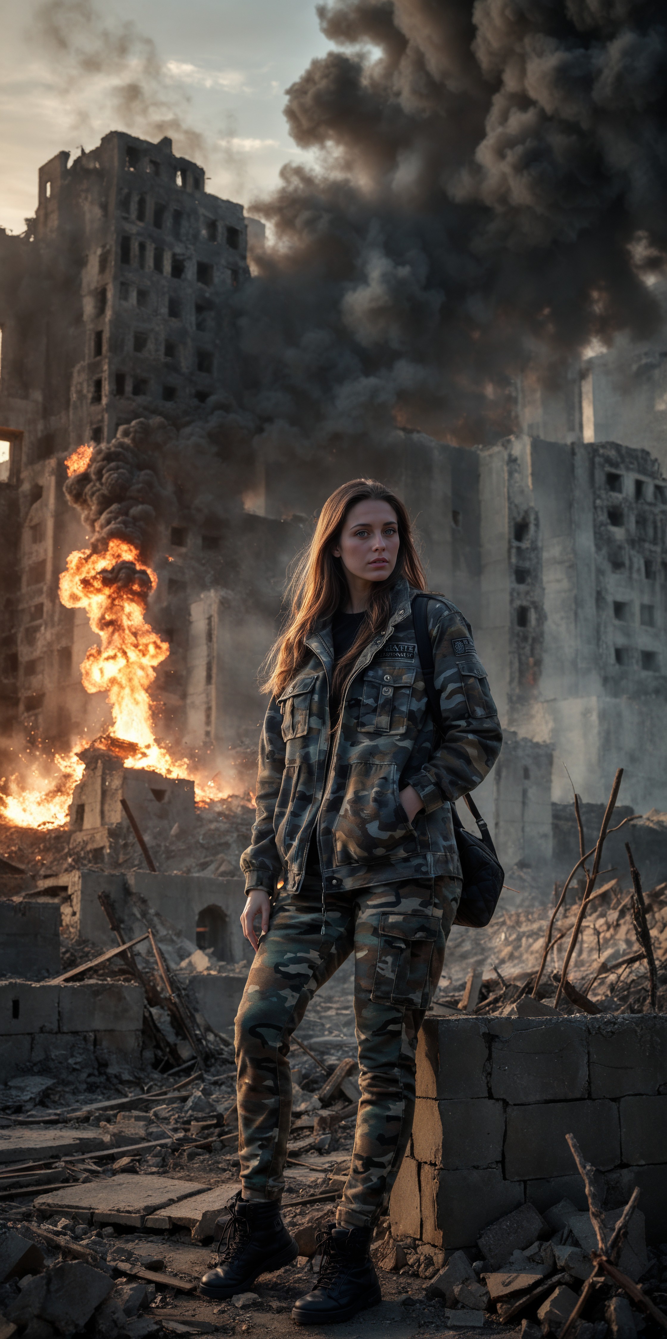 Setting: A sunlit meadow with rolling hills (reminiscent of Paradis’ countryside) or a grand wooden hall (Yeagerist-era aesthetic). Lighting: Warm, golden-hour glow casting soft shadows to highlight the fabric textures and her facial features. 5. Facial Expression: