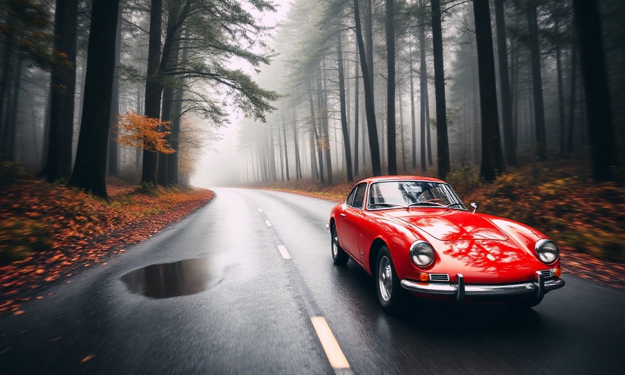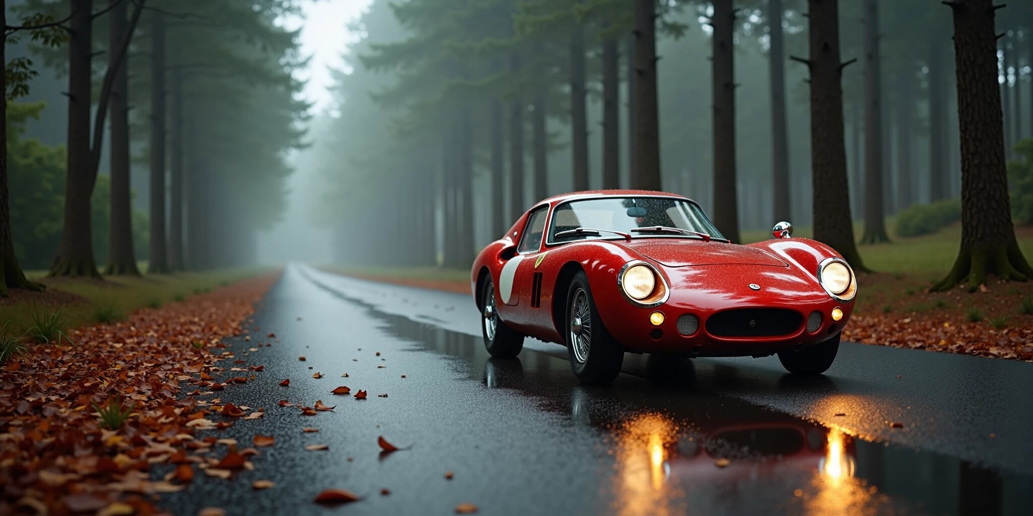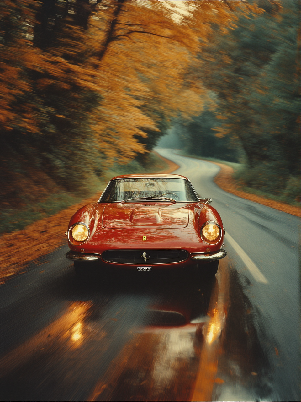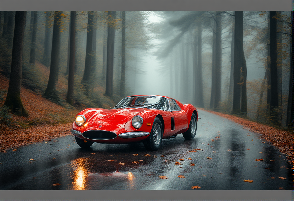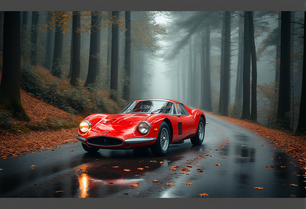 >>1241821 >Любая другая модель Дескрайбил его машинку и сгенерировал этот промпт в шнель со своими особыми настройками. Второй пик это TCD семплер на шнеле. photograph of a bright red classic sports car driving along a wet, narrow forest road, high contrast lighting, dramatic shadows, overcast sky, autumn leaves scattered on road, rain-reflected puddles, foggy and misty background, tall dark trees with thick trunks, car positioned slightly to the right of center, sleek and shiny body, round headlights, chrome accents, alloy wheels, windshield wipers, reflection on road surface, soft focus on background, sharp detail on car, vibrant color palette with dark greens and browns, moody and atmospheric, highly detailed, realistic texture, camera angle at eye level, slight upward tilt, perspective leading towards vanishing point, natural light source from top left, cinematic style, vintage aesthetic, sense of motion and speed, quiet and serene forest setting, nostalgic and timeless feel, visual emphasis on car's curves and lines, subtle narrative of journey and exploration. 8k quality, high resolution, photographic realism. 200 tokens. frame borders grey on top and bottom. wet road surface. reflection. overcast weather. autumn foliage. classic car design. vintage sportscar.