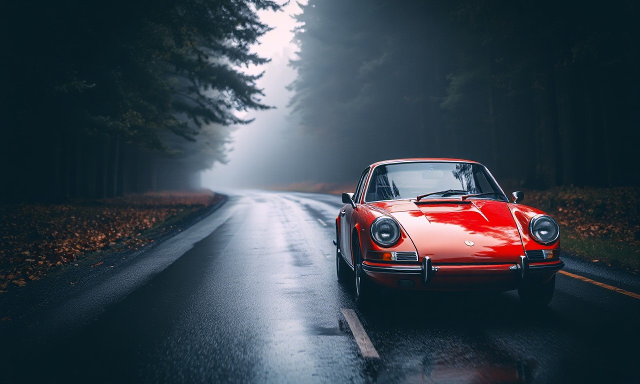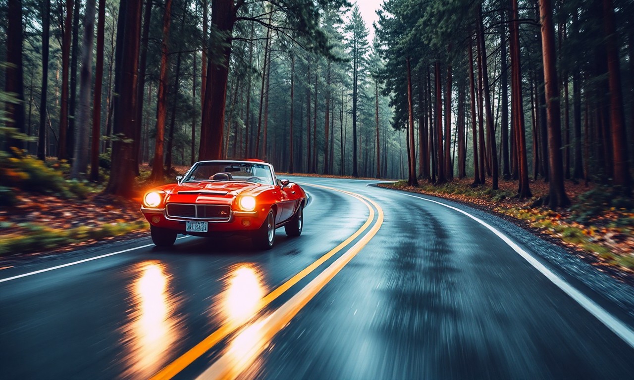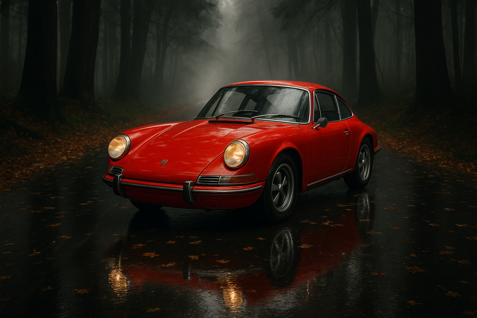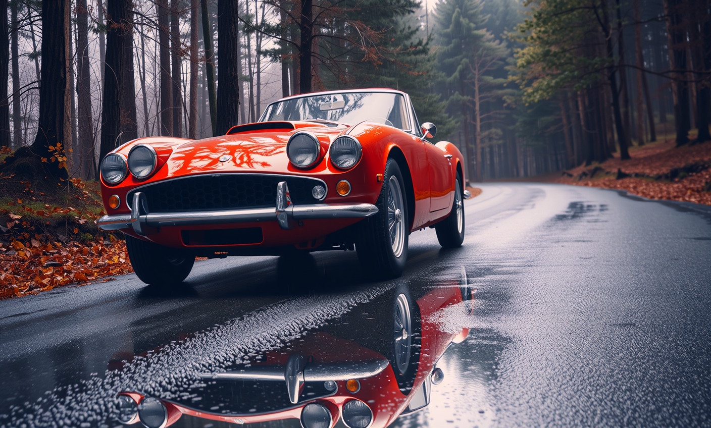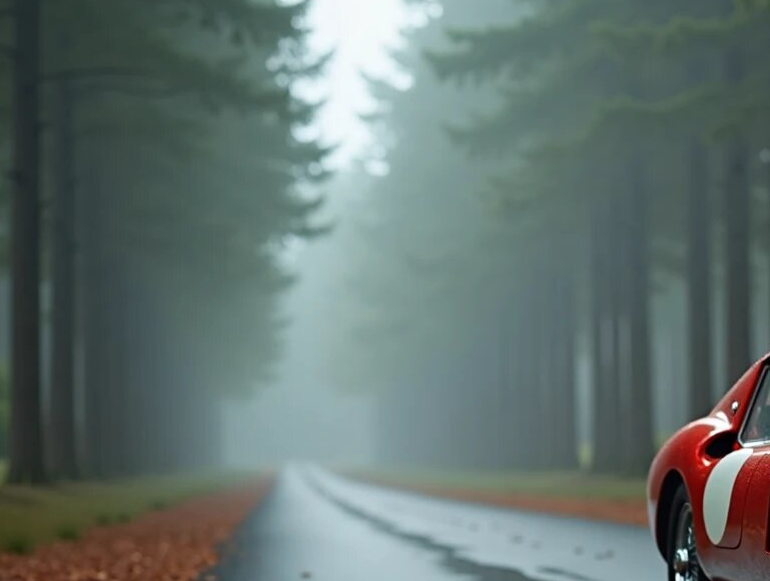 >>1241821 >Любая другая модель Дескрайбил его машинку и сгенерировал этот промпт в шнель со своими особыми настройками. Второй пик это TCD семплер на шнеле. photograph of a bright red classic sports car driving along a wet, narrow forest road, high contrast lighting, dramatic shadows, overcast sky, autumn leaves scattered on road, rain-reflected puddles, foggy and misty background, tall dark trees with thick trunks, car positioned slightly to the right of center, sleek and shiny body, round headlights, chrome accents, alloy wheels, windshield wipers, reflection on road surface, soft focus on background, sharp detail on car, vibrant color palette with dark greens and browns, moody and atmospheric, highly detailed, realistic texture, camera angle at eye level, slight upward tilt, perspective leading towards vanishing point, natural light source from top left, cinematic style, vintage aesthetic, sense of motion and speed, quiet and serene forest setting, nostalgic and timeless feel, visual emphasis on car's curves and lines, subtle narrative of journey and exploration. 8k quality, high resolution, photographic realism. 200 tokens. frame borders grey on top and bottom. wet road surface. reflection. overcast weather. autumn foliage. classic car design. vintage sportscar.