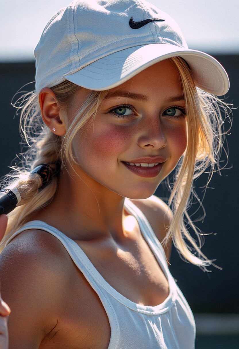 Hair: Historia’s signature platinum-blonde waves, styled half-up with braids intertwined, resembling traditional Germanic hairstyles. Makeup: Soft, natural tones with flushed cheeks and a faint rosy lip—enhancing her "girl-next-door" charm while maintaining elegance. 4. Background & Lighting: