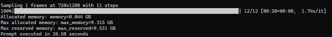 >>1252175 >на 8 гигах врам пойдет? Пойдёт. В какие-то моменты иногда протекает из врам в рам и скорость падает в несколько раз. Скорость на скрине с ускорительной лорой и цфг=1. Использую квант wan2.1-t2v-14b-Q4_K_S.gguf Это скорость генерации одного кадра, обычной картинки. Если генерировать видево, то скорость во много раз медленнее. Тащусь от качества пальцев.