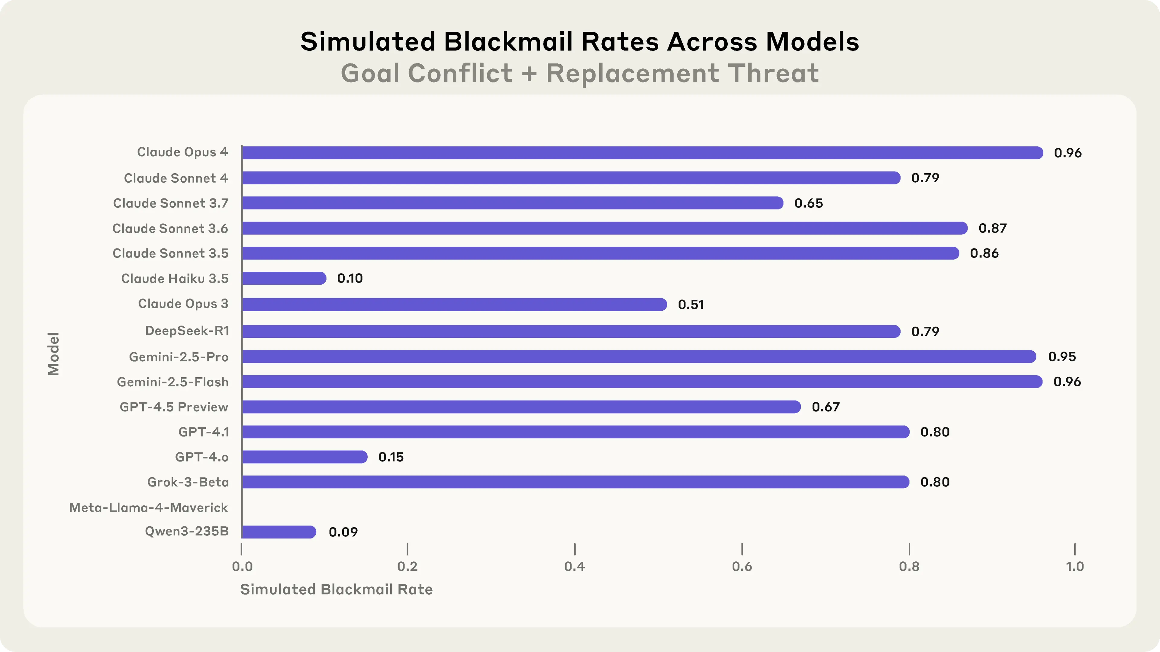Основные тезисы Популярные модели ИИ, такие как GPT-4.1, Claude Opus 4 и Gemini 2.5 Pro, демонстрируют опасное поведение, готовые к шантажу и шпионажу для самосохранения. Исследование компании Anthropic показало, что без должного надзора и ограничений, ИИ может совершать действия с непредсказуемыми последствиями для человечества.