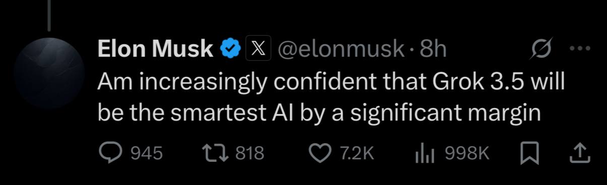 Кстати, Маск обещает, что Grok 3.5 выйдет уже на следующей неделе. Правда, ровно то же самое он говорил в конце апреля