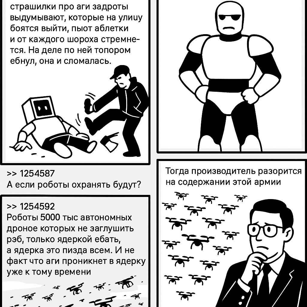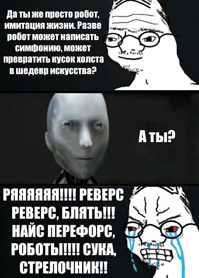 >>1254540 Чел, аги это просто коробка думающая. Придут и разъебут эту коробку сапогами, если выебываться начнет вместе с ее владельцем. Страшилки про аги задроты выдумывают, которые на улицу боятся выйти, пьют таблетки и от каждого шороха стремаются. На деле по ней топором ебнул, она и сломалась.