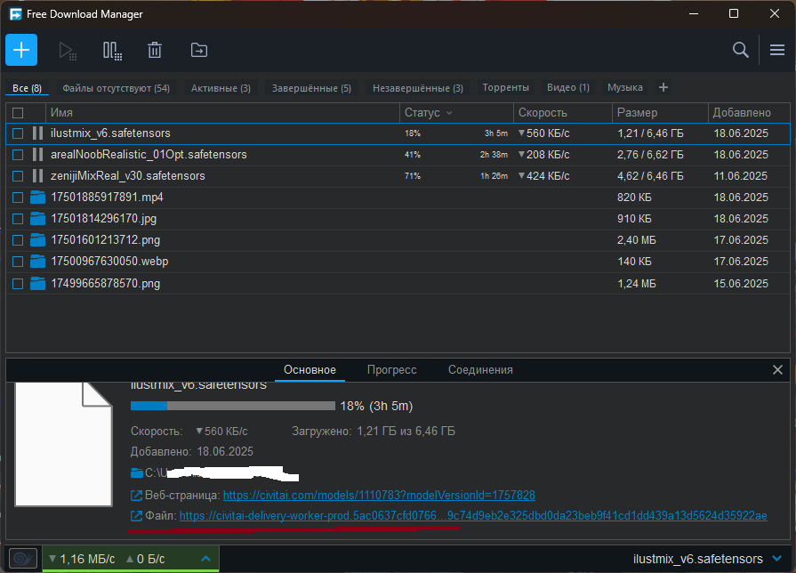 >>1250598 Сразу видно, человек высокой культуры Короче, когда скачиваешь файл, смотри адрес откуда он его качает, он будет типа civitai-delivery-worker-prod.твой токен.r2.cloudflarestorage.com остальная шелуха после слэша не нужна. Если юзаешь FDM, то скопировать нужный линк не составит труда. Впрочем таким же образом можно получить доступ и к текстовым нейронкам