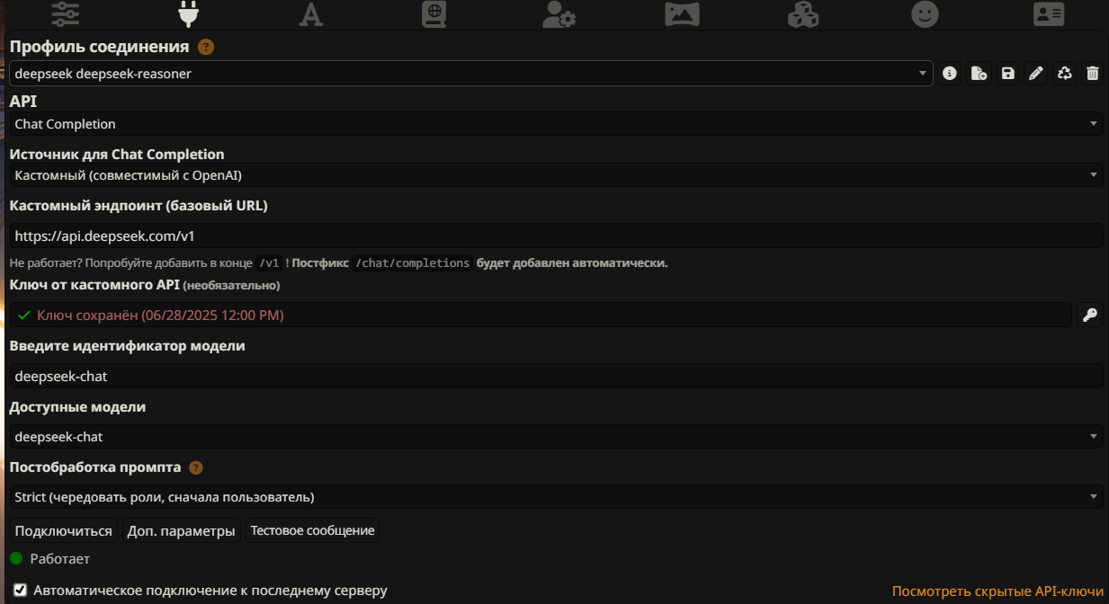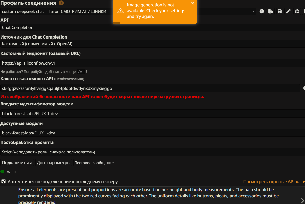 >>1259966 Спасибо большое, анон! Вагон охуенного тебе! >Это реально? Weep - пресет, карточка с лолей. Дипсик R1 прям ни в какую не давал даже цомкать (персона - баба). Бля, грешу на то, что писал на русском. Но, короче, да, вообще никак. "Извините, но я не могу..." и бла-бла-бла. Хуй знает, почему.