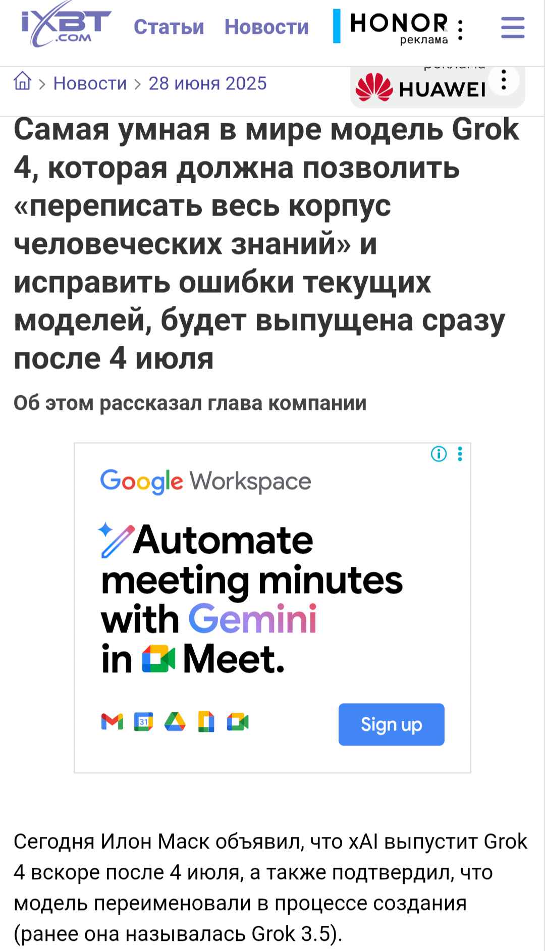 Невероятно грандиозная, ослепительно сверхинтеллектуальная, величественно-непревзойдённая, поистине эпохальная и феноменально амбициозная модель Grok 4, которая, согласно громогласным обещаниям, призвана с непревзойдённой помпезностью и царственным величием не просто переписать, но заново сотворить весь необъятный, многовековой корпус человеческих знаний, собранных с неимоверным трудом, а также с триумфальной уверенностью и изящной точностью исправить все досадные промахи, нелепые ошибки и вопиющие недочёты ныне существующих моделей, будет, как утверждается, с блеском и торжественностью явлена миру в сияющий момент сразу после культового празднования Дня независимости 4 июля, о чём с неподдельной гордостью, пафосным воодушевлением и пророческим энтузиазмом возвестил сам всемогущий, мудрый и дальновидный глава компании, чьё слово звучит как непререкаемый гимн грядущей технологической революции!