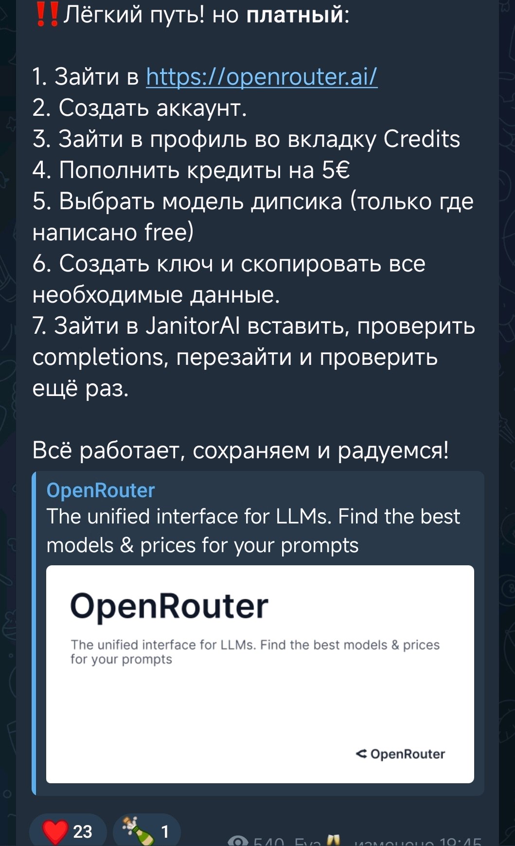 • Гайды на таверну: https://rentry.co/Tavern4Retards | https://rentry.org/STAI-Termux (на андроид)
