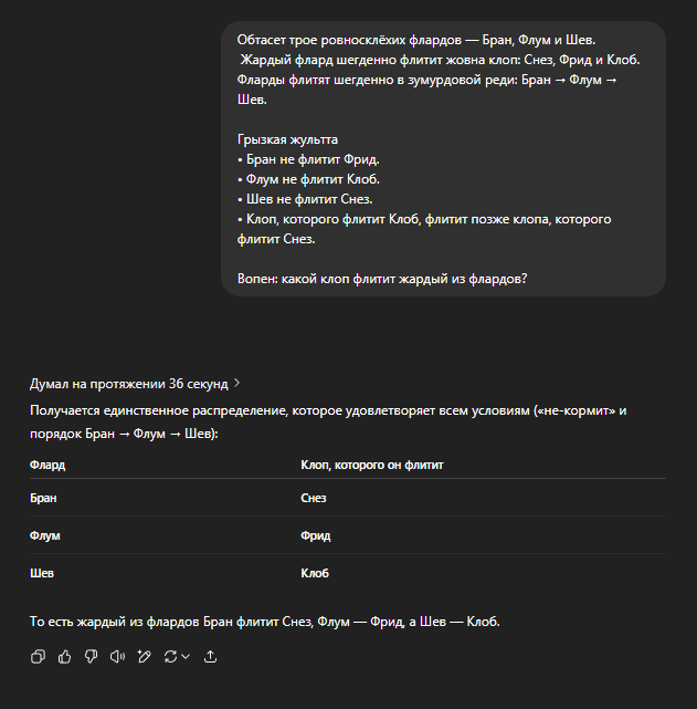 Может быть, ты уже наконец продемонстрируешь, какие логические задачки ты задавал ЛЛМ? Или ты просто напиздел? Лично я практически сразу понял, что ты пиздишь, но может тут остались те, кто еще хоть немного в тебя верит?