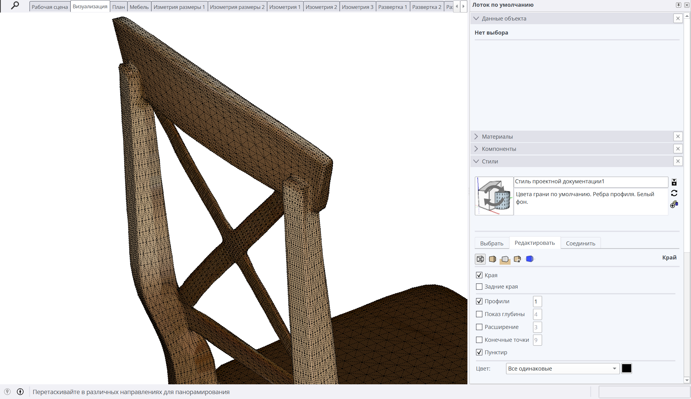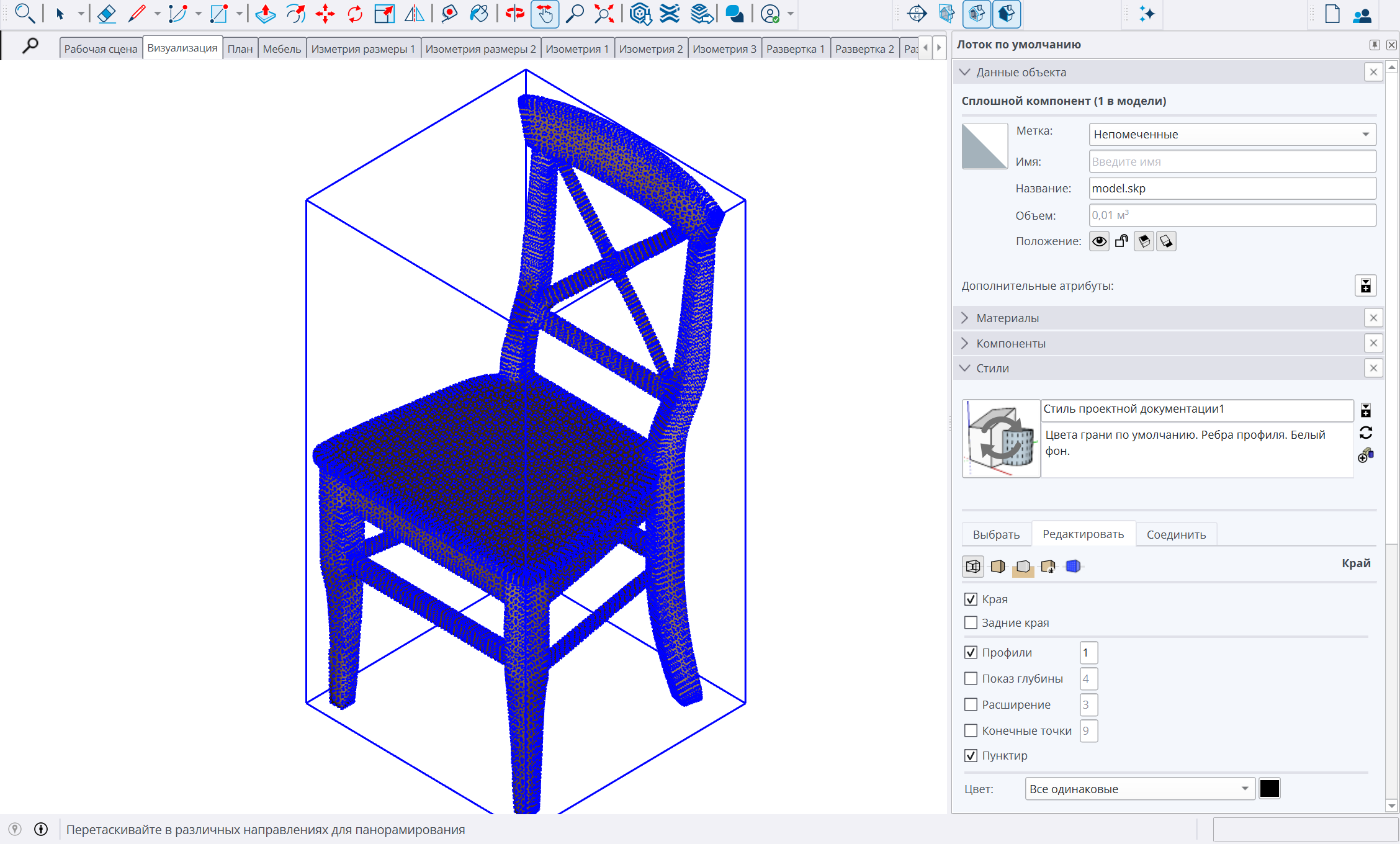 А если наоборот, супермелкие заказики вроде "задизайни мне лоджию или хрущ"? Там обычно обмер с рулеткой на листочке и пара фоток по которым строишь изначальную модель, потом размазываешь на нее референс как-нибудь реализуемо (ну типа картинка стула, ищешь похожий из доступных в продаже, втыкаешь модель, или перепиливаешь шкаф с картинки так, чтобы он влез в другое помещение, да и цвет попутно меняешь), принимаешь правки - финал.