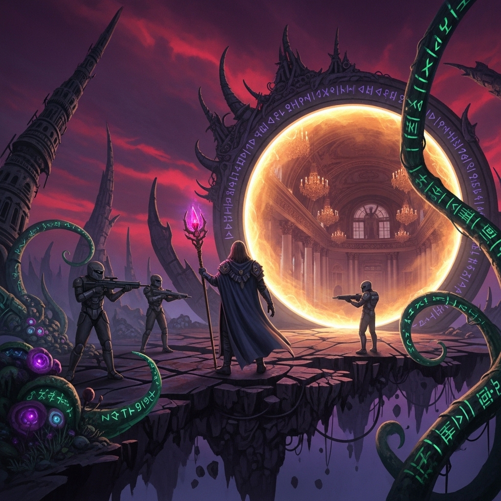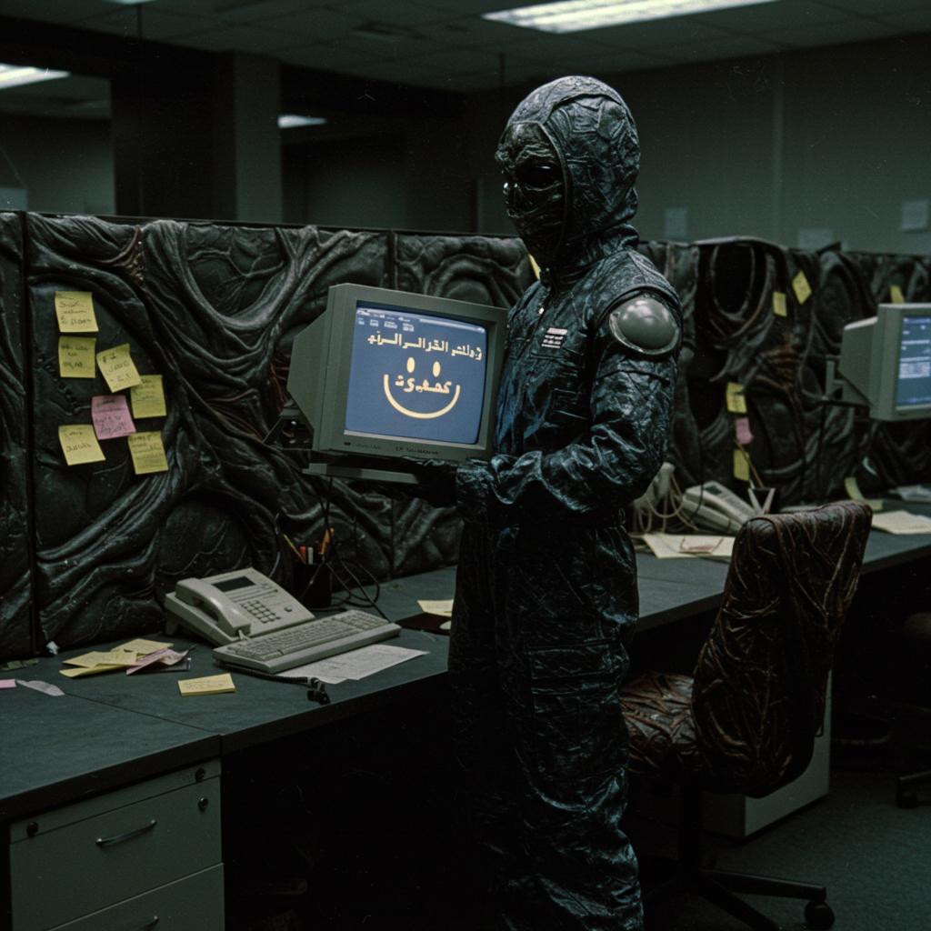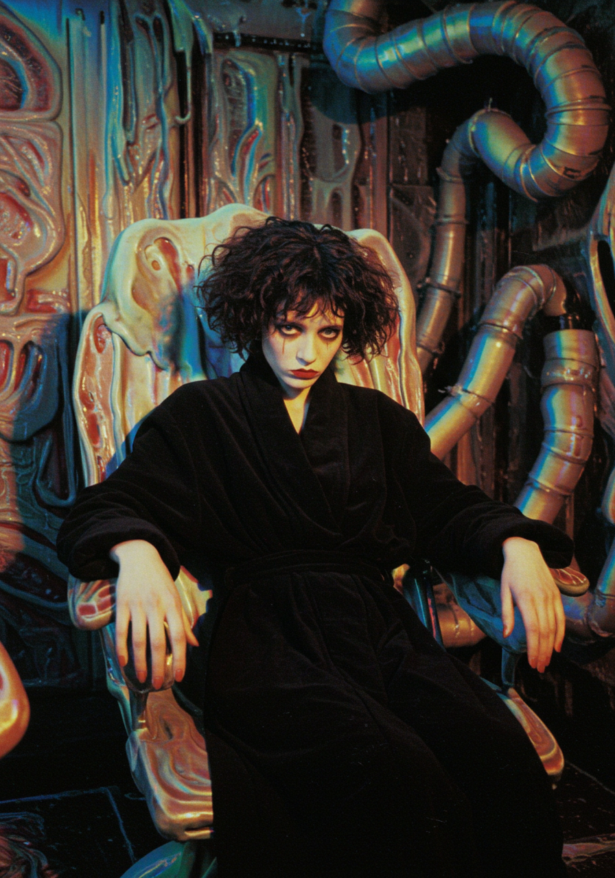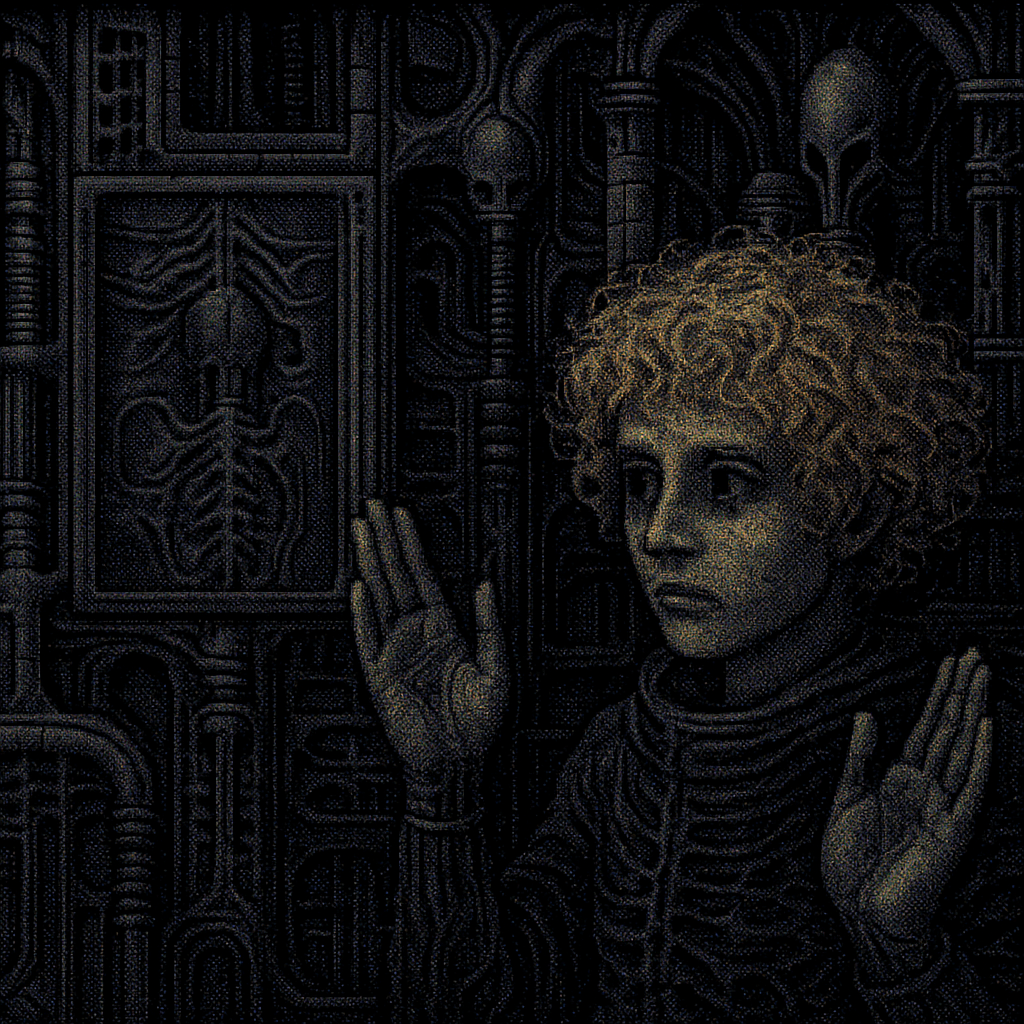 >>1320429 gpt-image-1 по референсу, доступна в соре и тут >>1297708 Промпт: Screenshot from an early 2000s survival horror game with PC-98 aesthetic influences. PS1-era jittery polygons, PC-98 pixel art with vivid colors, VHS distortion, dithering shadows, soft pixel edges, nostalgic limitations. Palette includes tar black, eggplant, void purple, matte blacks, tarnished silvers, bruised grays. The environment feels sacred and oppressive—a decaying biomech monument where glossy obsidian surfaces peel to reveal rust, emphasizing raw early 90s digital horror aesthetic.