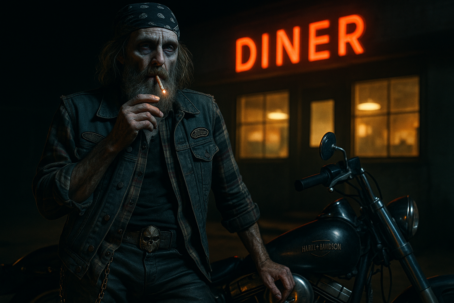 Можно было так не изъебываться, Gemini Flash 2 спокойно рисует подобное если просто попросить сделать кинематографичненько. Изначально этот промпт писал для Gemini Flash 2.5? который на первой картинке, и он это заигнорил по большей части. Решил просто для сравнения пихнуть в старую версию. Надо будет попробовать у 2.5 не текстом выпрашивать, а пихать в него визуальные референсы на стиль, но пока халявные генерации истратил.