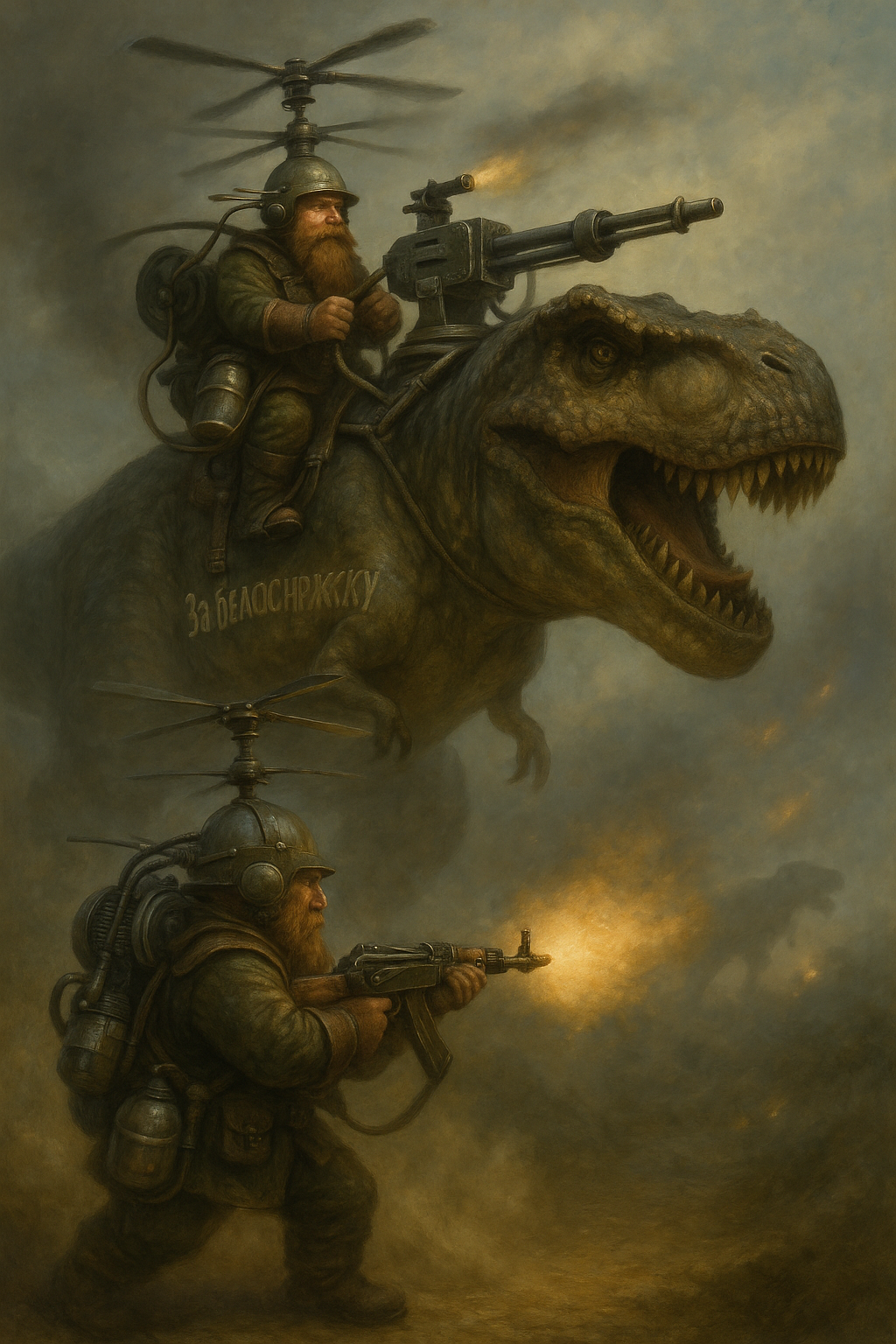 Я назвал это чудо инженерной мысли Экстренное устройство перемещения (ЭУП-1) Двухвинтовое Для преодоления препятствий Или спасения На поясе бак с бензином, на спине лёгкий двигатель от мопеда и редуктор Двухвинтовая система гасит реактивный момент Вот бы мне в КБ РФ, наши пацаны на фронте хучрили бы сейчас всех сверху на ЭУП-е