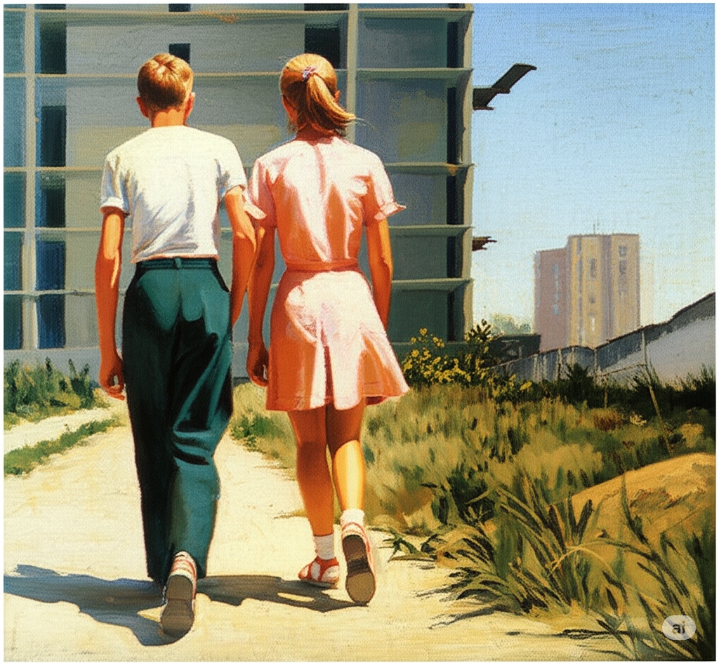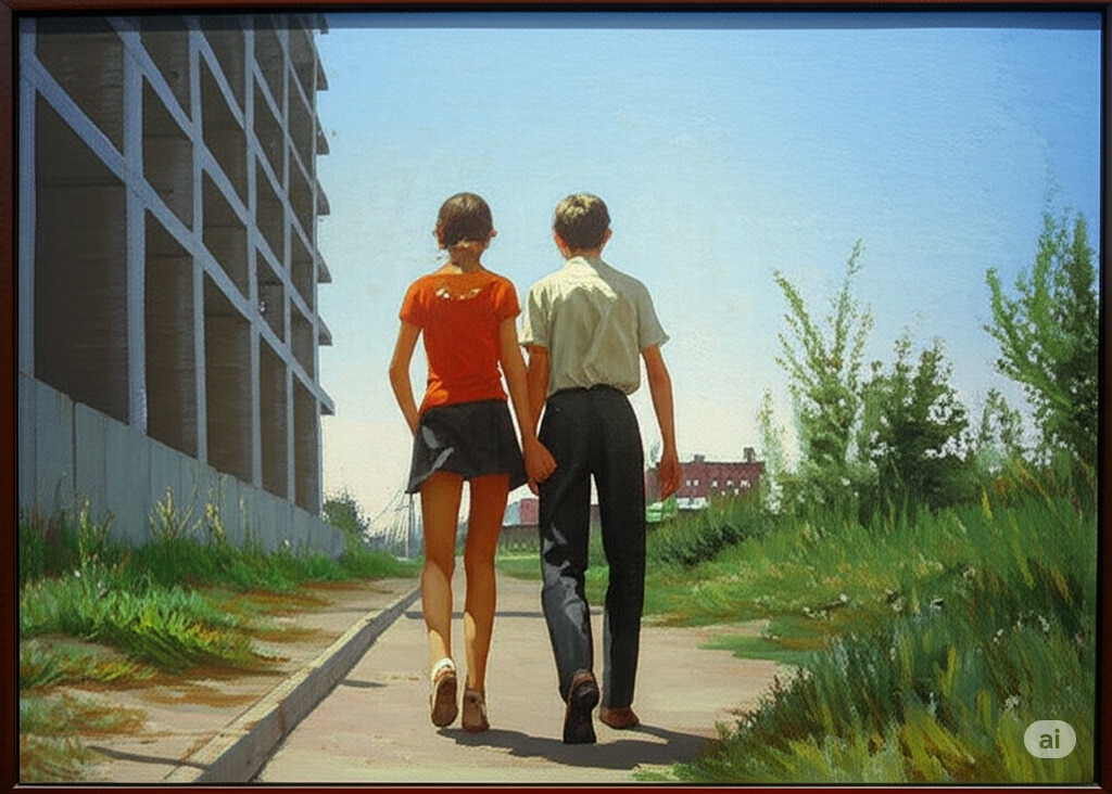 И да, я не говорил в запросе gemini что буду изображать бабу нудисткой, поэтому иногда были косяки из-за того что голая баба идет босиком держа в руках свои шлепки. то есть это была просто обычная баба в обычном отпуске. It is 2:43 , She is lying on her back in bed, with her arms spread loosely on the sheets and a half-asleep smile on her lips, while the young man beside her is turning away. Around them, the room is dim, the curtains are closed.