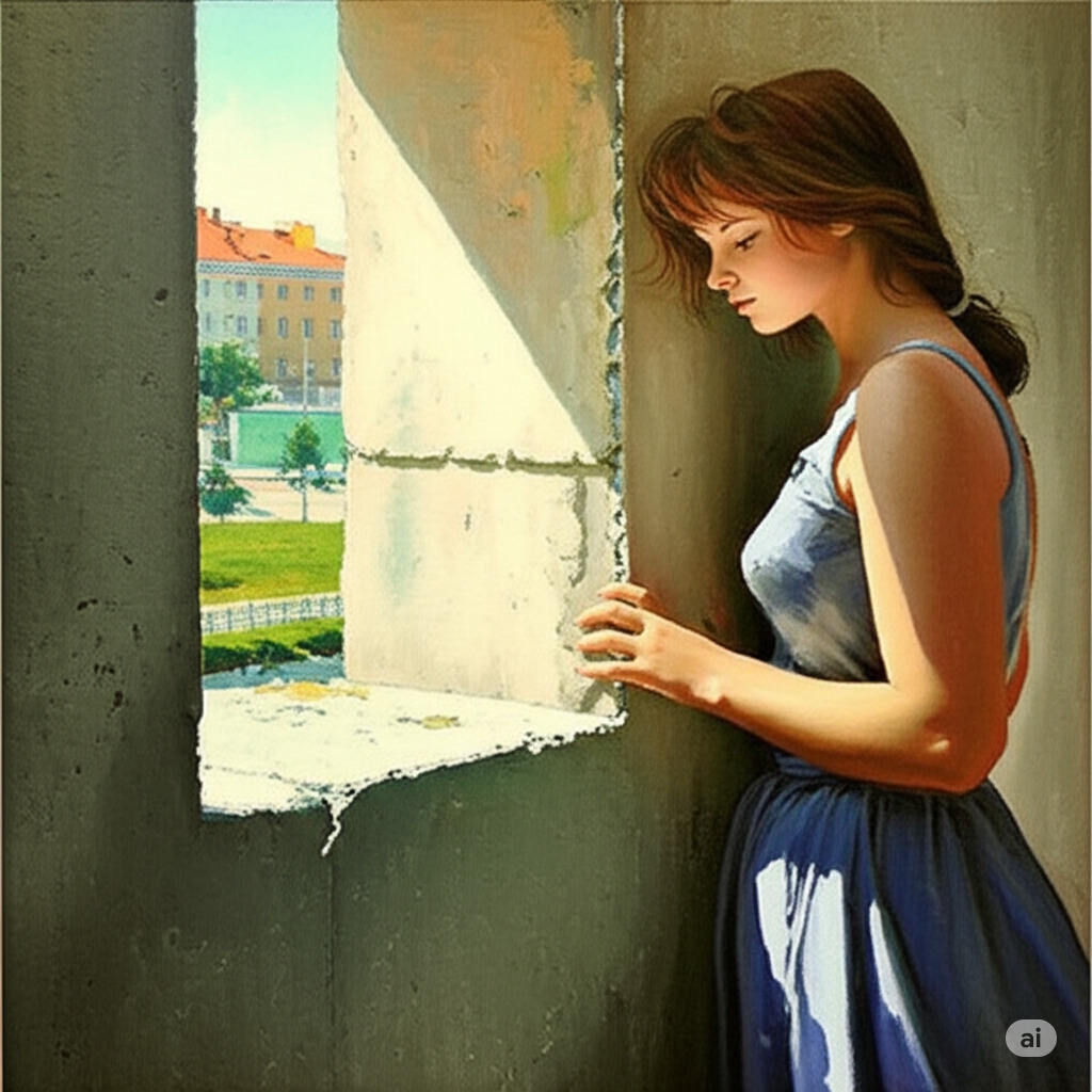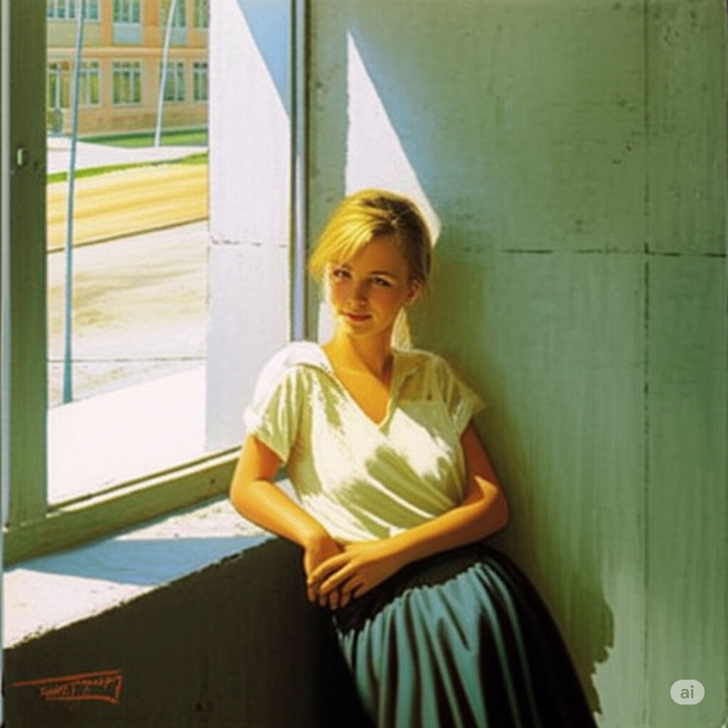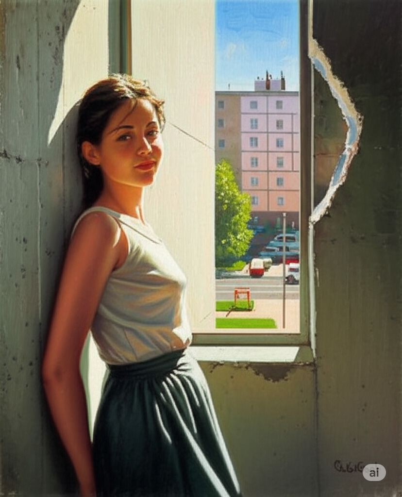 Попросил изменить масштаб, добавить болше природы и уменьшить фигуру на картине, стал откровенную лолю рисовать, никакие adult woman не помогали. Пришлось вернуть все взад