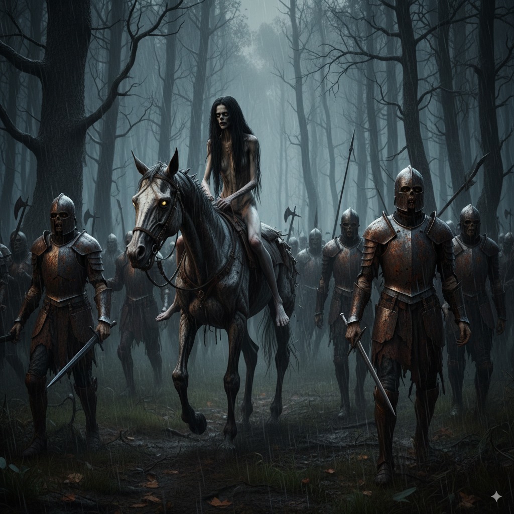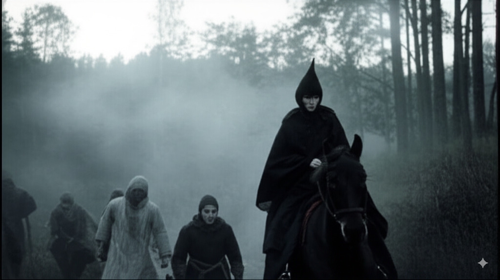 >>1333577 > Setting: North-European forest, mist, drizzle, low key short lighting, grim and gloomy atmosphere. Visual style: cinematic still from a medieval horror motion picture shot on 35mm Eastmancolor film stock, muted colors, film grain, halation.