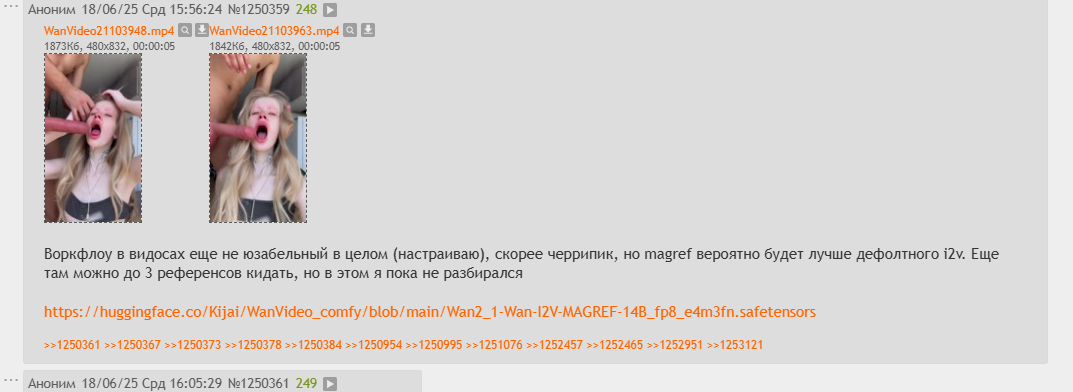 Но, для любителей t2v прона выкатили вот это https://civitai.com/models/1734812 считай что-то вроде первого UberPornMergeMix для t2v Wan.