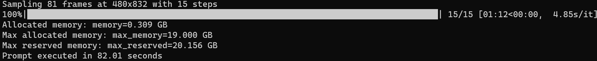>>1261043 кароче с лайтом на 40060881 в среднем 5-6 минут на 4 шага, плюс-минус 60-70 секунд итерация, плюс загрузки и tiled vae.. t2v.. Если i2v то там тоже можно уложиться в 5-6 минут на 4 шага, но зависит от того как картинку порежешь. Модельки либо кванты 4км или 8_0, в скорости нет разницы, разница только во времени загрузки-выгрузке. Всё это или обычная стоковая или фьюжн с поверх подрубленным лайтом.