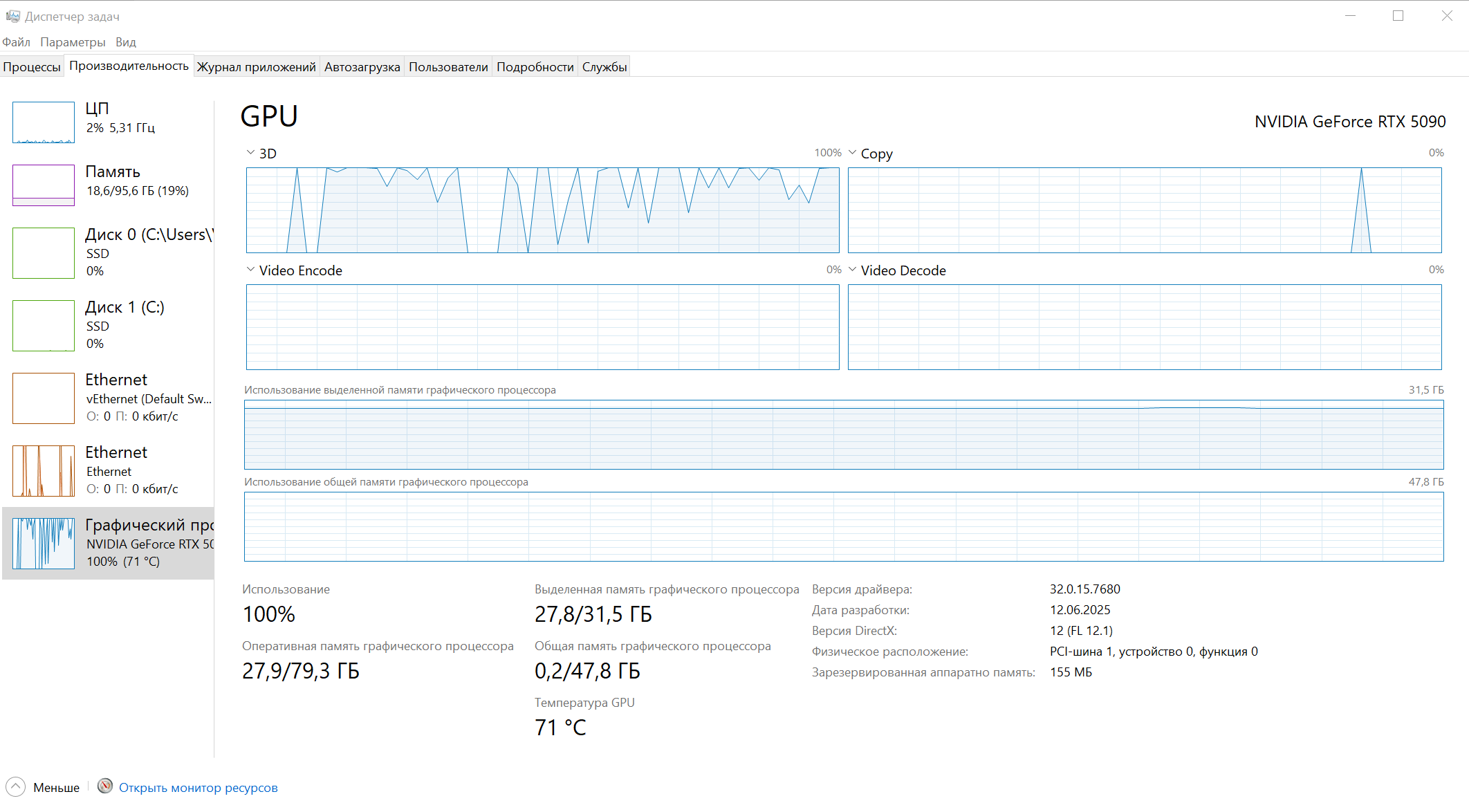 >>1257219 Ты не понимаешь. Разница в скорости поистине колоссальна. Если у меня 24-ядерный проц генерил в 100 раз медленнее не самой топовой видяхи, то у тебя старый ноут и в тыщу раз медленнее, а если не повезет с поддержкой технологий, то и больше. 3 секунды видео будешь генерить сутки, а то и неделю. С шансом в любой момент вылететь.
