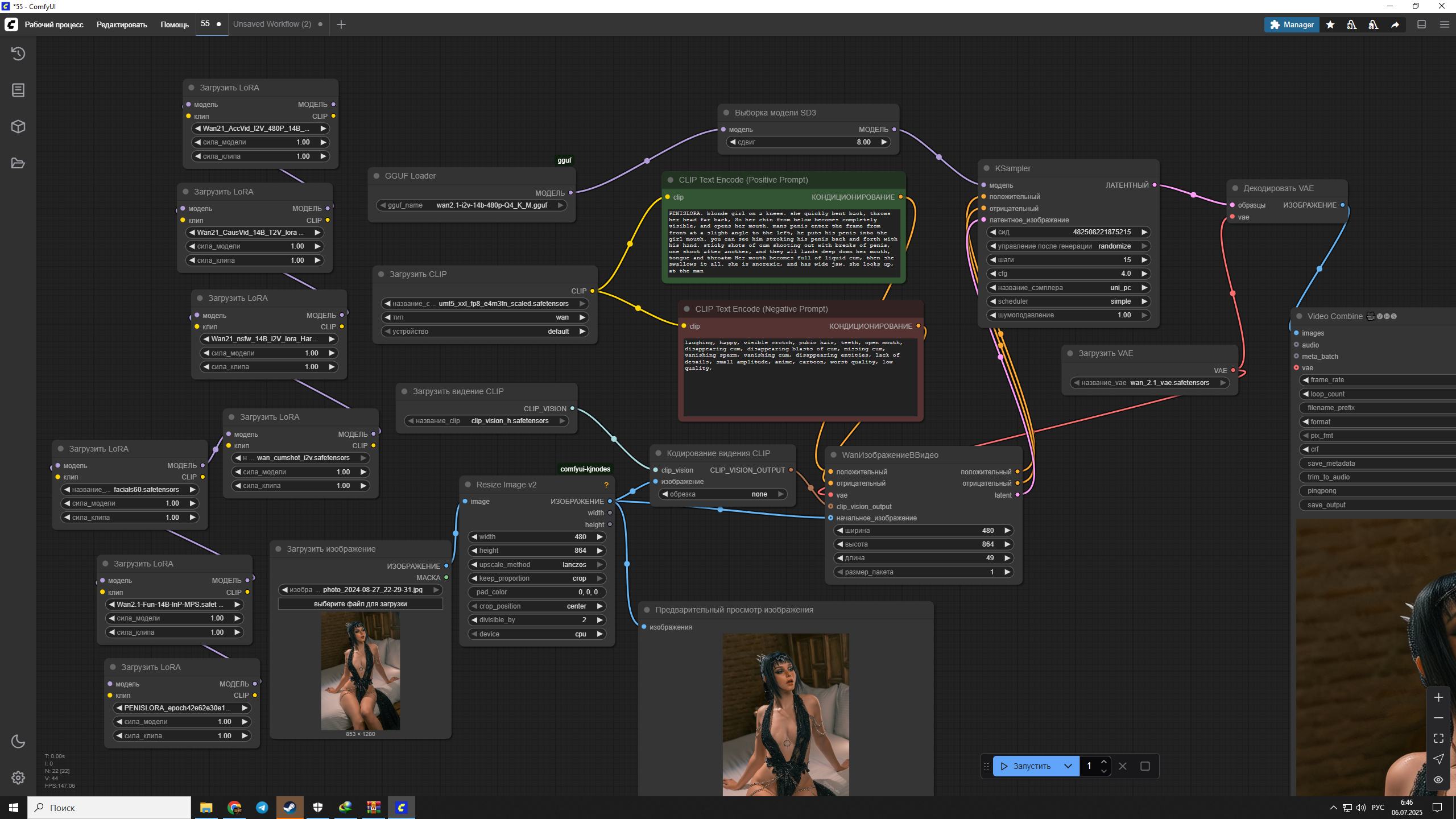 >>1266796 Взял пример с твоих промтов, но воркфлоу оставил пока свой чтобы хоть с ним разобраться. Начало получаться что-то адекватное! Проблема была видимо в несочетании промта с фоткой Холланд-Шадухи. А вот просто бабы крупным планом на лицо лол получились довольно норм, 5-5.5 минут каждая. .