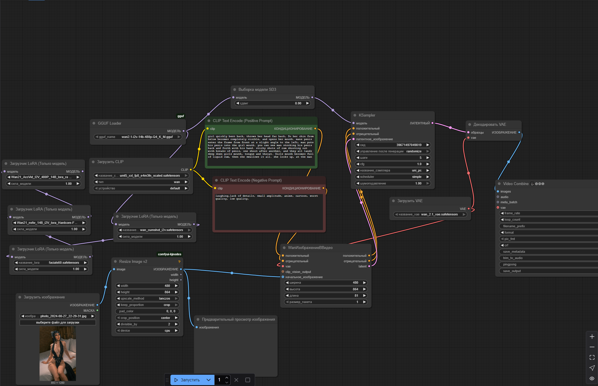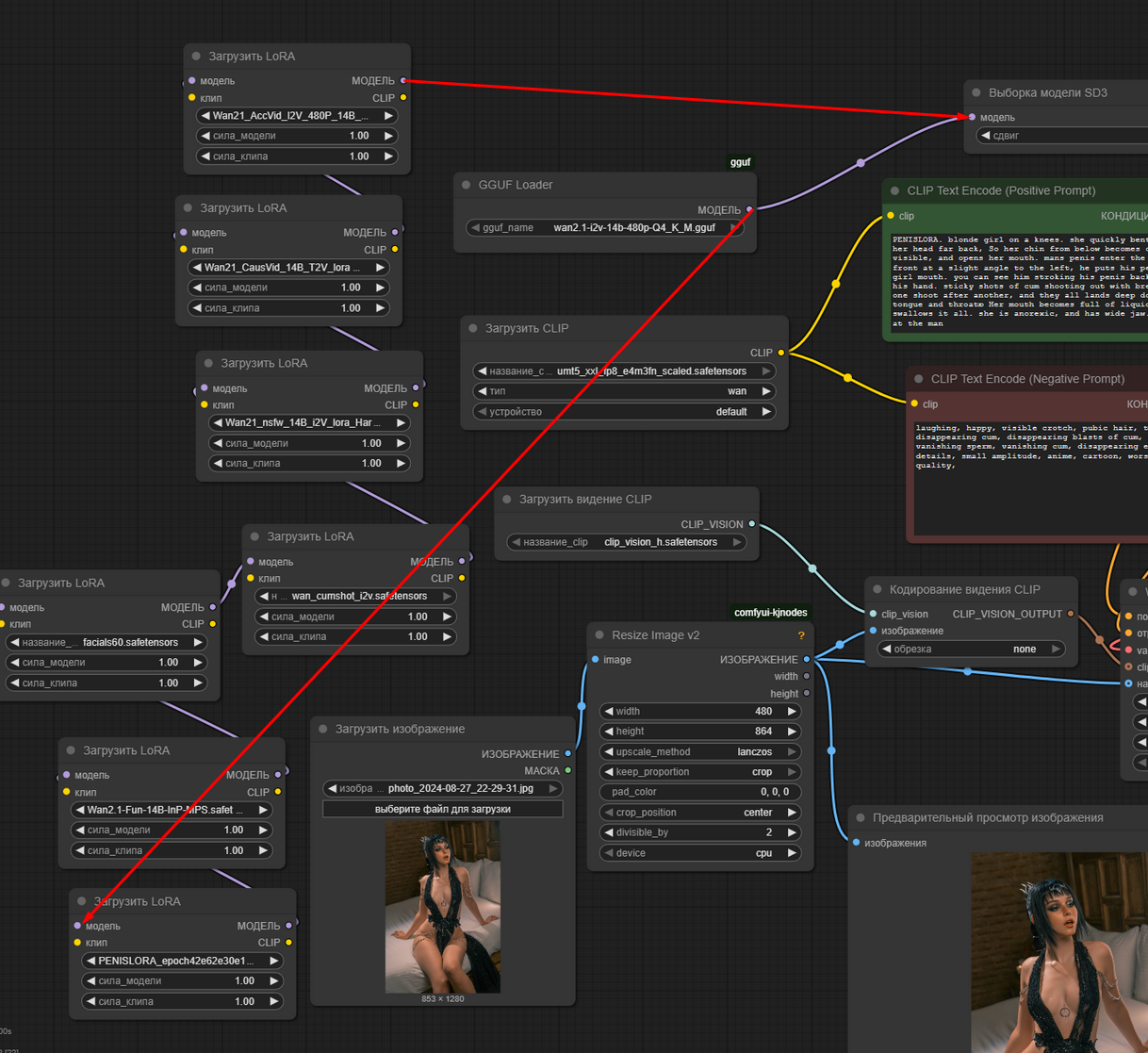 >>1270019 > Попробовал по первому воркфлоу сделать видос. У меня получилось видео будто снято на камеру с плохо ловящего канал телевизора. То, что там сперма есть даже разглядеть невозможно. Попробовал поднять шаги сэмплера и сам сэмплер поменять, но похоже что дело не в этом. Куда копать? Попробуй ничего не менять, а скачать все лоры что в воркфлоу