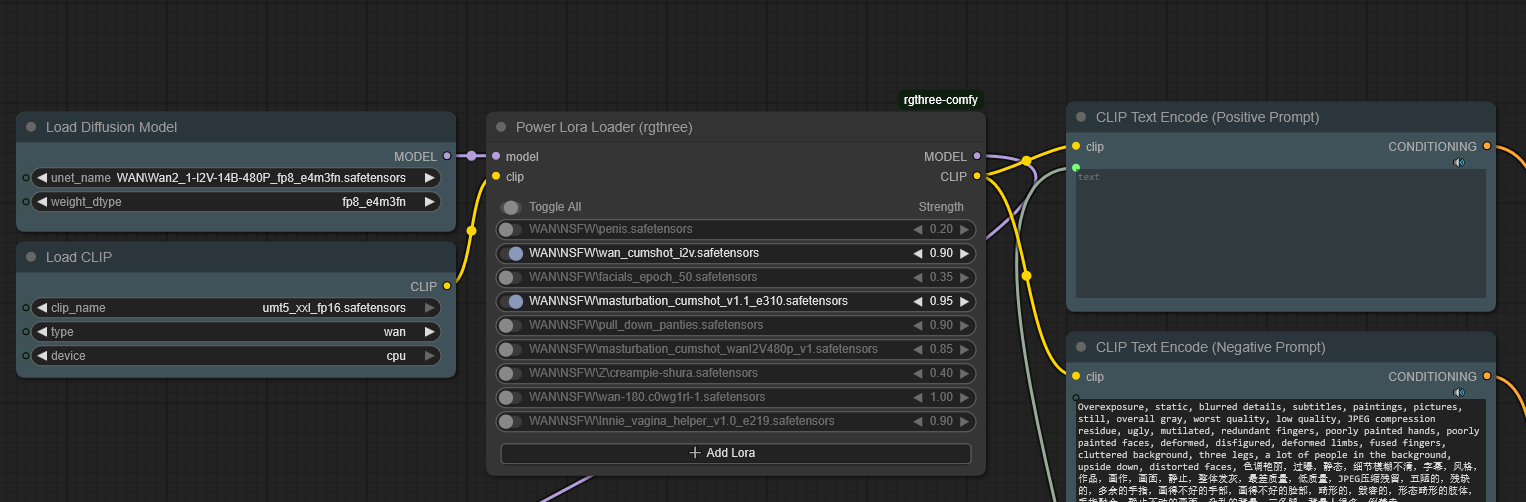 >>1266713 Попробуй воркфлоу с этих видосов. Ускорялки я поотрубал, ггуф для тебя подрубил, еще чутка лоры поменял. Но все равно иногда с этим лайтом сперма то пропадает то не лендится, продолжаю тесты (иногда, перегорел) Пропмты в видосах различаются чутка, в одном хуй слева, в другом справа.