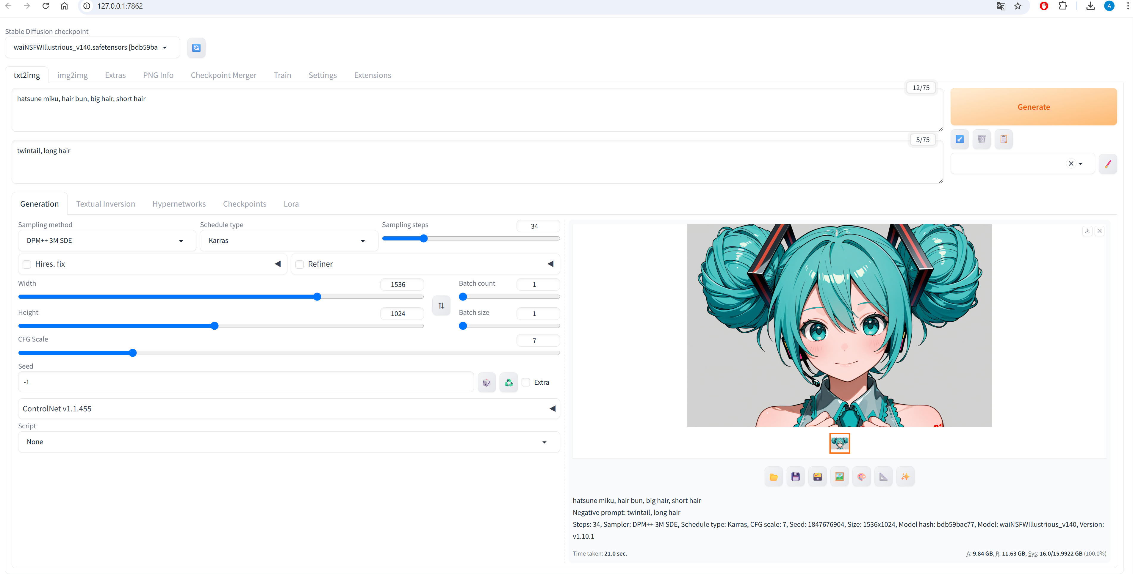 >>1265265 Я кажется разгадал секрет в позитив hatsune miku, hair bun, short hair (бред, на это так работает) в негативе: twintail, long hair. И все, пучке по объему получаются адекватные длины волос до колен иногда