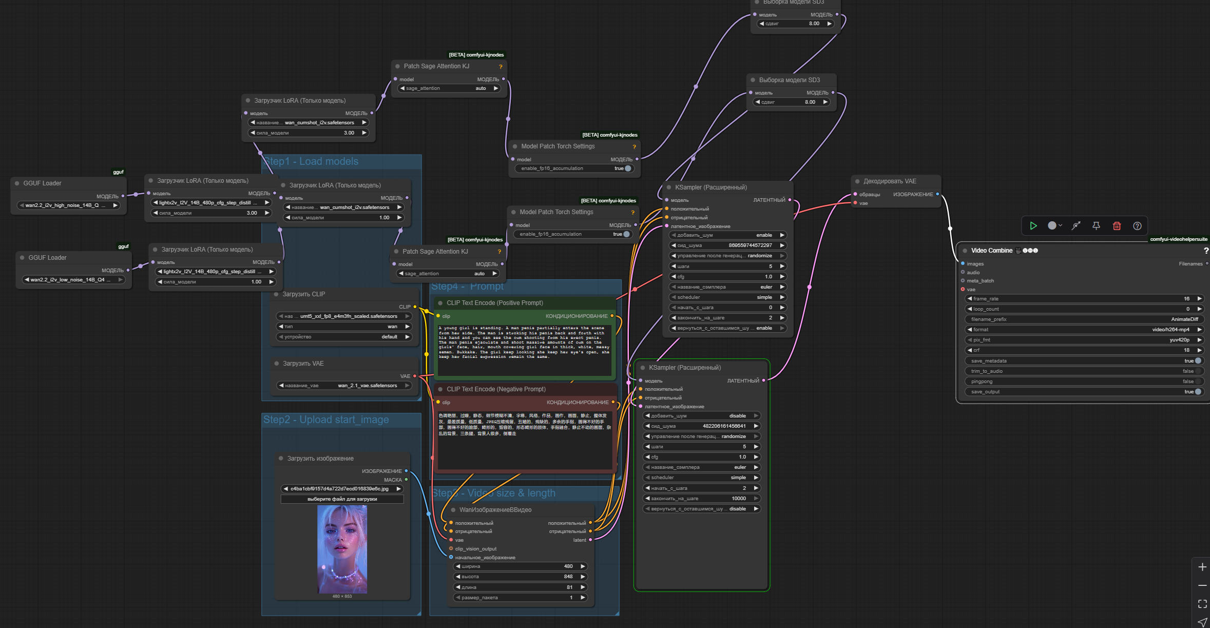 >>1291490 Нужен lightx2v новый, чтобы не 20 шагов, а 4 шага генерило. Ван без нее и был неюзабельным, кстати. Там придумывали хитрые воркфлоу для ускорения хотя бы вдвое, но все еще ждать 6-7 минут ради 3-5 секунд было ну такое. А вот дистиллят охуенно сработал, конечно.