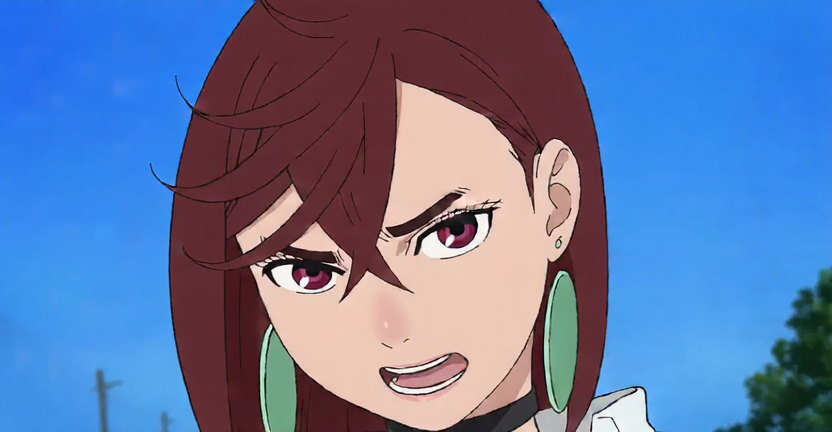 Ginger girl doubts and think. She crosses her arms over her chest, then scratches her head. Classic animation.
