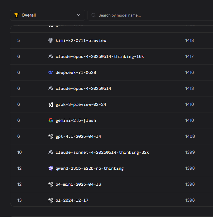 На LLMарене появилась очень умная загадочная модель под названием zenith, пользователи подозревают, что это GPT-5, уж слишком умна в логическом мышлении. Одновременно с этим, на другой арене, а именно на веб арене, появилась модель под названием lobster, и пользователи думают, что это тот же zenith, то есть GPT-5. Lobster кодит круче, чем o3-alpha-responses-2025-07-17 которую недавно тестировали на арене, и от которой все ссались кипятком. Ещё на LLMарене появилась модель summit, пользователи думают, что это может быть одна из вариаций GPT-5, так как мы уже знаем, что модельку выпустят в трёх вариантах: GPT-5, GPT-5-mini, и GPT-5-nano (и возможно GPT-5 Pro). Возможно OpenAI тестирует именно мини-версии своих моделей, так как по знаниям они ушли недалеко от GPT-4.5 и GPT-4.1, но по логическому мышлению zenith сейчас топ 1. Опять же, судя по отзывам юзеров. Так что относимся к этой инфе с осторожностью.