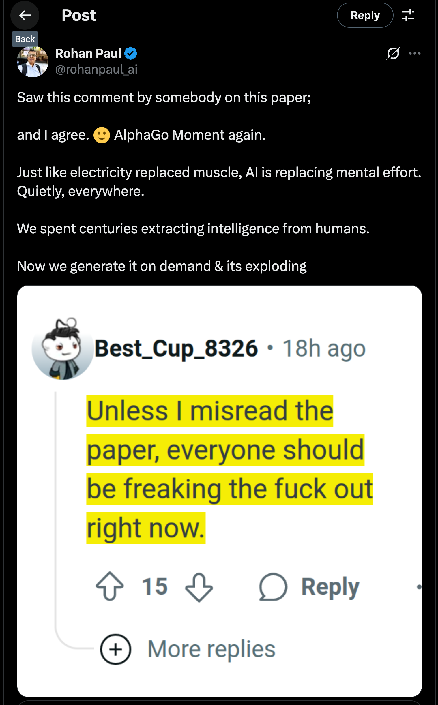 >>1288410 > Т.е. никто серьезно из разработчиков в АГИ не верит, а все эти разговоры чисто для хайпа? Ведь если бы АИ к 2029 мог почти полностью вытеснить программистов, художников, композиторов, операторов колцентров и т.п., то прибыли должны бы быть значительно больше. Выручка генерируется не прогнозами, а полезностью на сегодняшний день. Люди и корпорации платят за то, что полезно уже сегодня. Насчет разрабов не знаю, но Цукерберг смог переманить из OpenAI не всех. Когда он предложил одному из ключевых разрабов зарплату в миллиард за несколько лет, тот отказался. А Суцкевер отказался продать Цукербергу свою компанию за 30 миллиардов. По крайней мере, некоторые верят, как мне кажется.