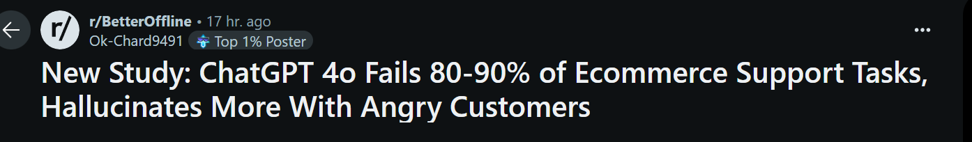 >>1288504 Тебе не ошибки надо находить, а работу выполнять. ИИ сейчас уже может выполнять работу на уровне среднего чела. Спец его уделает за счет общего понимания, но это не везде нужно. Там где нужно много компетенции, останутся люди, но таких работ меньшинство.