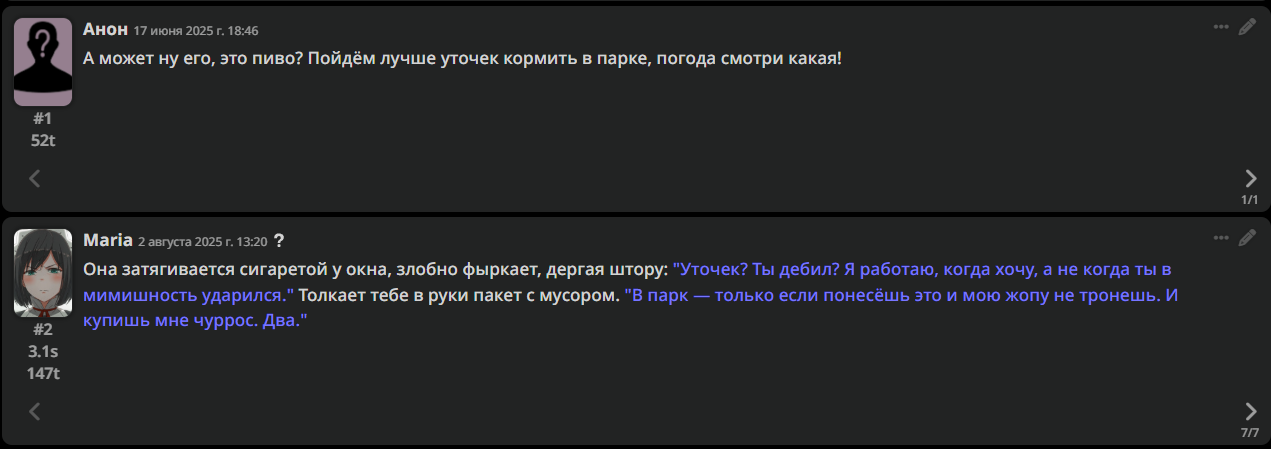 • Гайды на таверну: https://rentry.co/Tavern4Retards | https://rentry.org/STAI-Termux (на андроид)